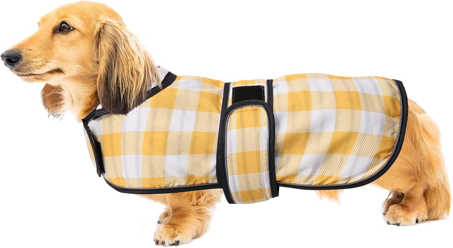 Dachshund Raincoat Corgi Raincoat Dogs Waterproof fit for Dachshunds Weiner Long Back Breeds with Reflective Stripe Great Coverage in Autumn Winter - Yellow Plaid - M