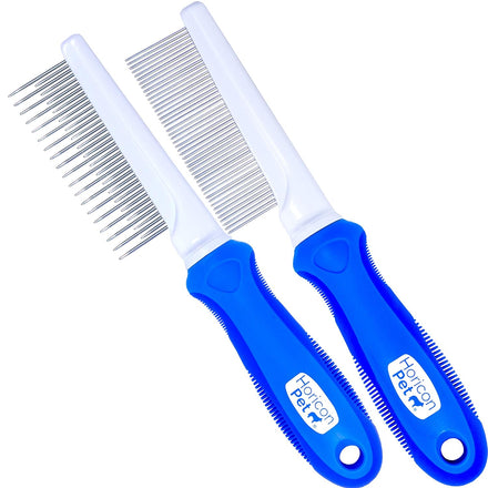Our detangling comb features alternating long and short pins and can be used to care for long-haired or short-haired breeds.