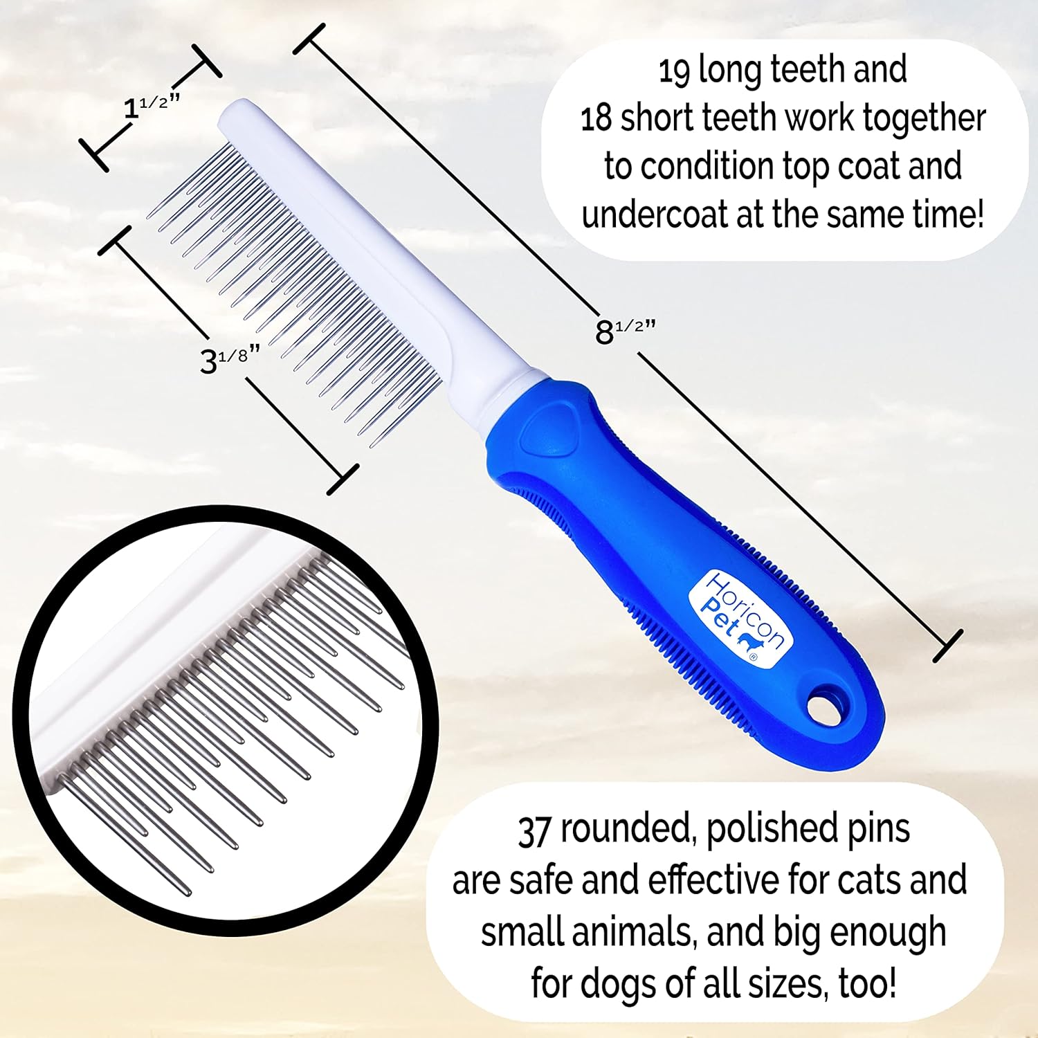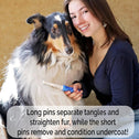 - Long and short pins allow combing of top coat and undercoat to detangle fur and prevent matting.