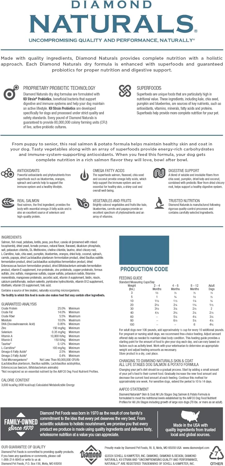 DIAMOND NATURALS Skin & Coat Real Meat Recipe Dry Dog Food with Wild Caught Salmon 30 Pound (Pack of 1)
