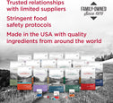 - Family owned & run, MADE in the USA choosing ingredients from TRUSTED, SUSTAINABLE sources around the world; Call with questions 800 442 0402