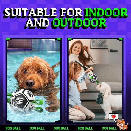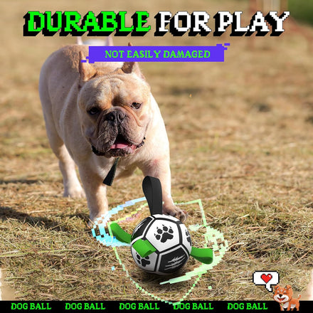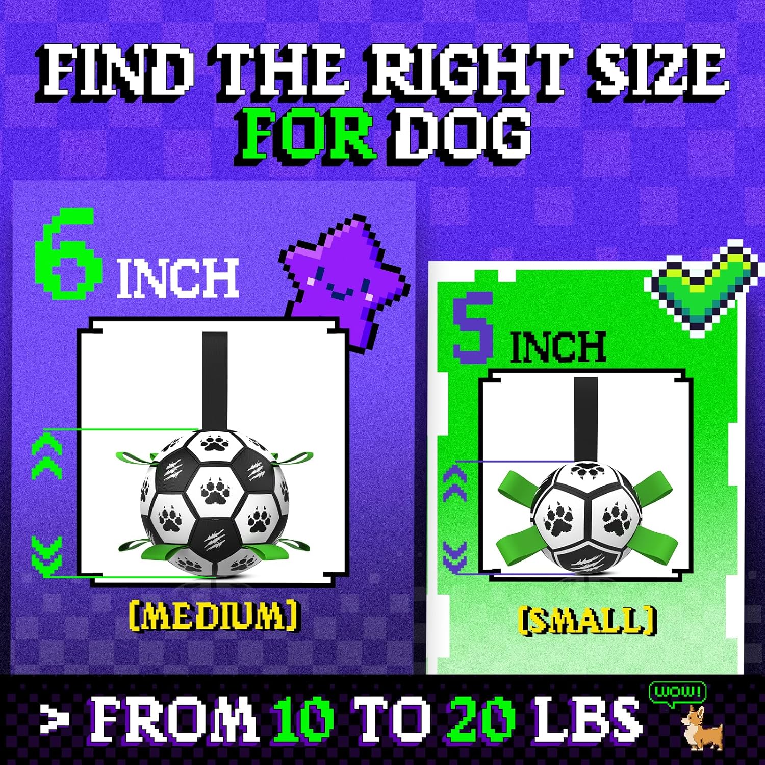 - Dog Soccer Ball with Straps: The design of nylon straps gives dog ball a new definition. This dog soccer ball has 4 short straps and 1 long strap. The strap allows dogs to pick up and pick up better, perfect for tug of war, fetch, or other games that keep your dog physically active and mentally engaged