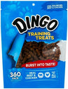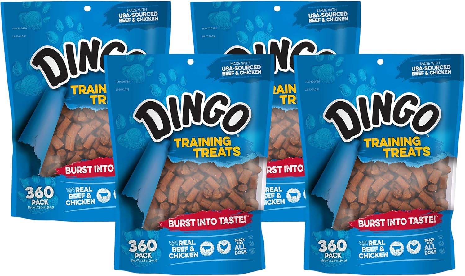 Product Description Feed Dingo Training Treats to your dog as a treat or snack. For supervised consumption only. Always provide plenty of fresh drinking water and visit your veterinarian regularly. Satisfaction guaranteed or your money back – see product packaging for details. Dingo brand combines powerful flavors and benefits to create bones, chews and treats that are sure to keep you and your dog wanting more. Shop our wide variety of shapes and flavors, with options for any size companion! Amazon.com The Story Behind the Bone In the 1990's, the Dingo brand started with a man named Les and his dog, Dingo. Like most dogs, Dingo had an instinctual need to chew, and to his owner's dismay, Dingo enjoyed gnawing on furniture and destroying shoes. In hopes of fixing Dingo's behavioral problems, Les attempted replacing shoes with rawhide bones. Unfortunately, Dingo was not a fan of these traditional rawhide chews. Rather than giving up hope, Les searched for an alternate solution. Coincidentally, Les's wife worked for a jerky company, and Dingo loved the jerky treats. Due to Dingo's adoration of the jerky, Les began soaking the traditional rawhide bones in water and filling them with jerky, leaving some jerky around the edges for Dingo to see. And with that, the Dingo bone was born. Finally, Dingo had a treat that he loved, while still being able to fulfill his chewing needs. Now your dog can enjoy the original Dingo chew in the form of mini bones. The Healthy Treat Dogs Love The traditional rawhide bone is a durable, edible bone that serves as a common treat for dogs. With the Dingo Mini Packs, dogs reap the dental benefits of teeth cleansing and gum conditioning, while also enjoying the meaty flavor that the Dingo bone ensures. Because all Dingo bones are hand tied with real meat in the middle, they provide the highest quality treat for your dog. This treat is both easily digestible and soft enough not to damage dogs' teeth, making it a safe and healthy bone that your dog will love. One of a Kind In 1997, the Dingo brand was granted a patent for the single most logical improvement on the rawhide dog chew in thirty years. Due to its meat in the middle quality, the Dingo bone is the only product of its kind on the market. This allows dogs to experience a unique treat that's innovation and uniqueness separates it from traditional rawhide bones. Although competitors have attempted to mimic the Dingo bone, no other product combines rawhide with real meat in the middle to create a longer-lasting treat that encourages your dog to chew through the entire bone. Dingo comes in various types! Dingo comes in different shapes, flavors and functional forms: Dingo Knotted Bones Dingo Rolls, Chips & Twists Dingo Novelty Shapes Dingo Naturals Dingo Soft & Chewy Dingo Healthy & Flavorful Chews Dingo Dental Tartar Control Dingo Dental Total Care Dingo Dental Fresh Breath Dingo Munchy