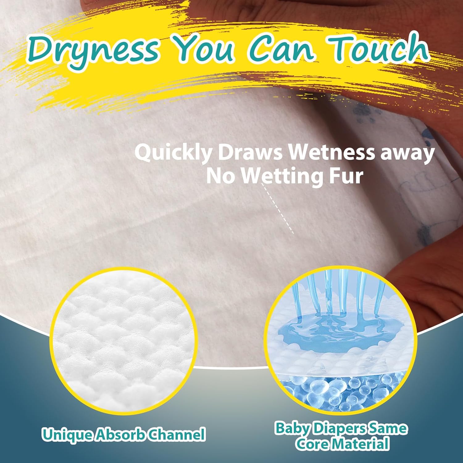 - Dryness and Absorbance: The disposable dog booster pads used baby diapers core material, locks wetness in pads; long time leak protection to keep touch-dry and all-time neat