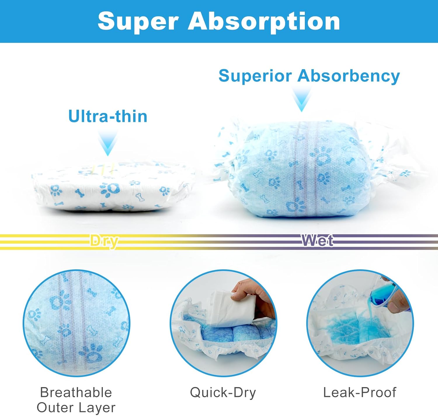 - Super Absorbent & Leak-Proof:Premium materials lock in moisture, keeping your home clean and your dog dry. Ideal for training, seniors, or post-surgery care.