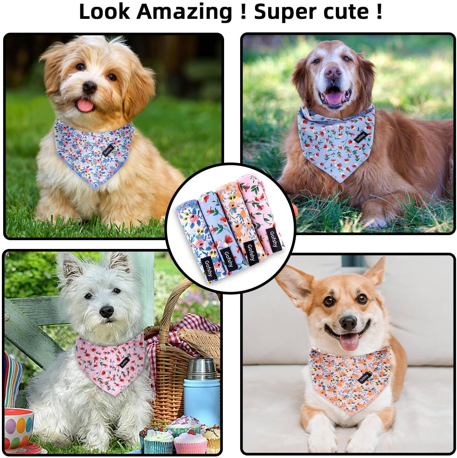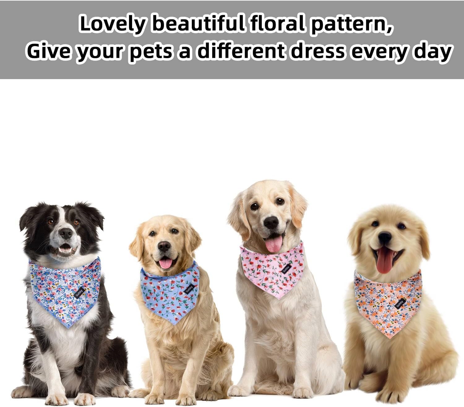 - Very Impressed!Looks Amazing: Beautiful colors floral bandanas make your pet look super cute, the funny bandanas fit for girls, these 4PCS bandanas orange pink blue can change the look of your pet every day of one week, cute birthday gift ideas.