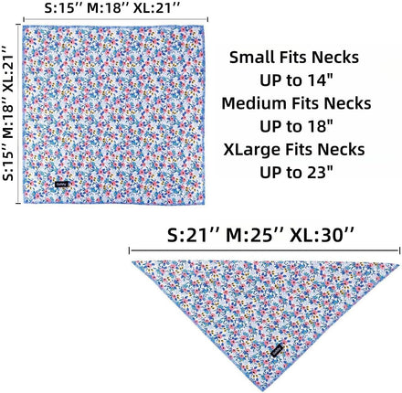 - Adjustable Sizing:Square Sizes 15*15inches Small fits necks up to 14". 18*18inches Medium fits necks up to 18". 21*21inches Xlarge fits necks up to 23". Please measure your pet's neck and leave room to tie knot.