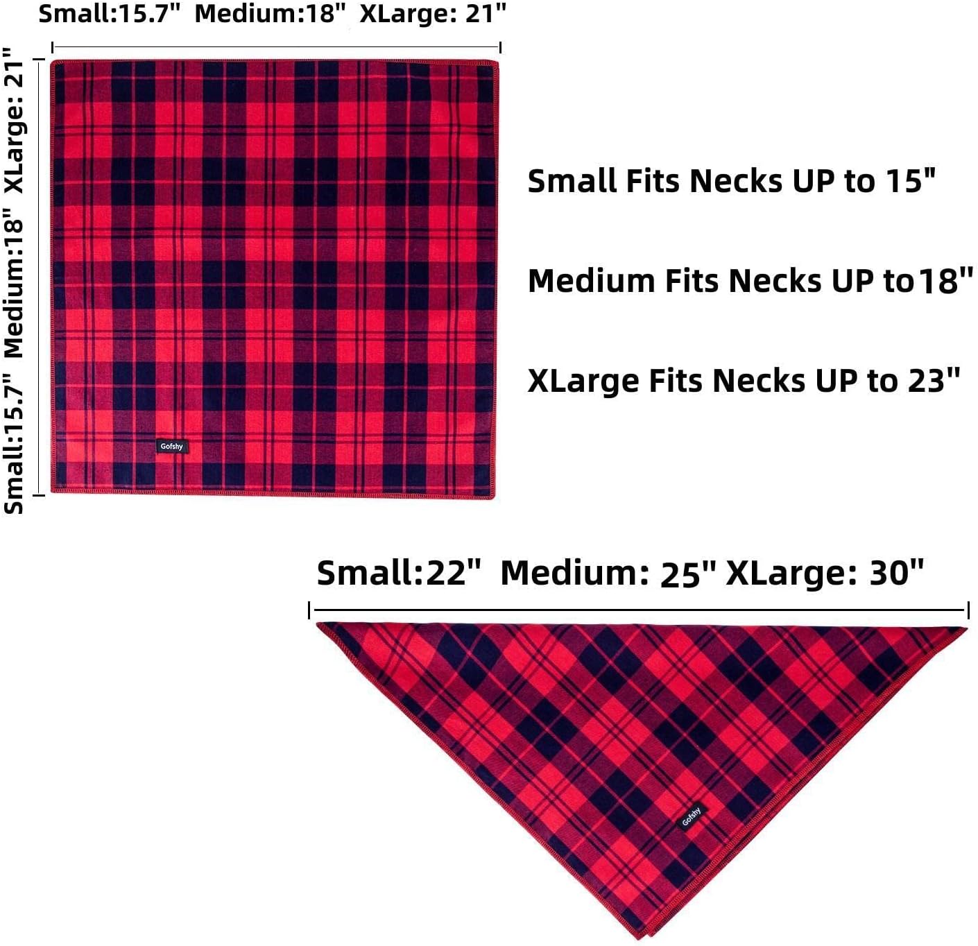 - Multiple Size: 15.7*15.7inches Small fits necks up to 15". 18*18inches Medium fits necks up to 18". 21*21inches Xlarge fits necks up to 23". Please measure your pet's neck and leave room to tie knot