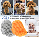 - DOES A GREAT JOB REMOVING FUR: Soft split rubber tips quickly scrub away dirt, dead skin and loose fur making it an excellent dog grooming brush for shedding and bathing.Our dog bath brush also increases the effectiveness of shampoo lathering, allowing less product to go further. Achieve a deeper clean than shampooing alone. This dog brush can be used on wet or dry fur!