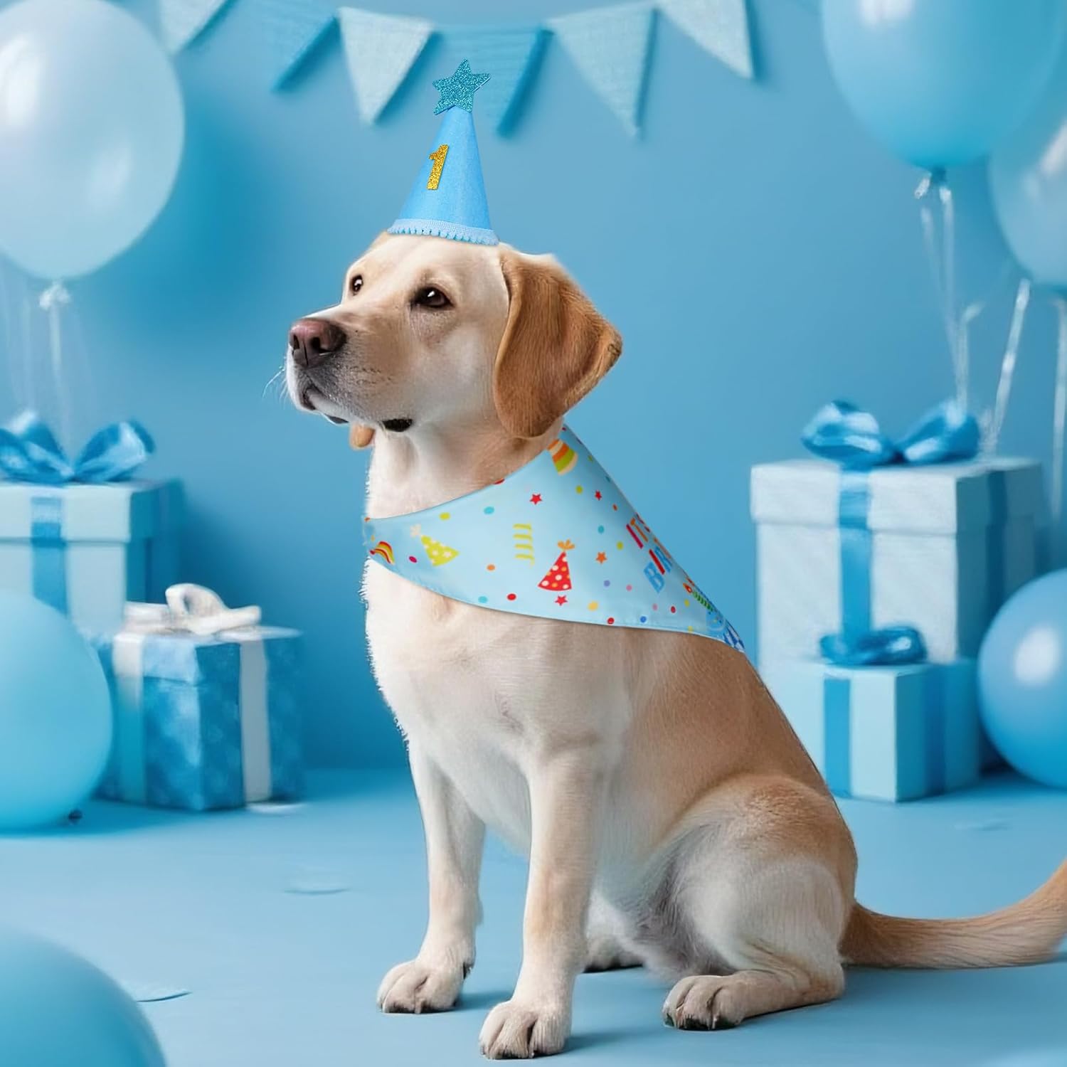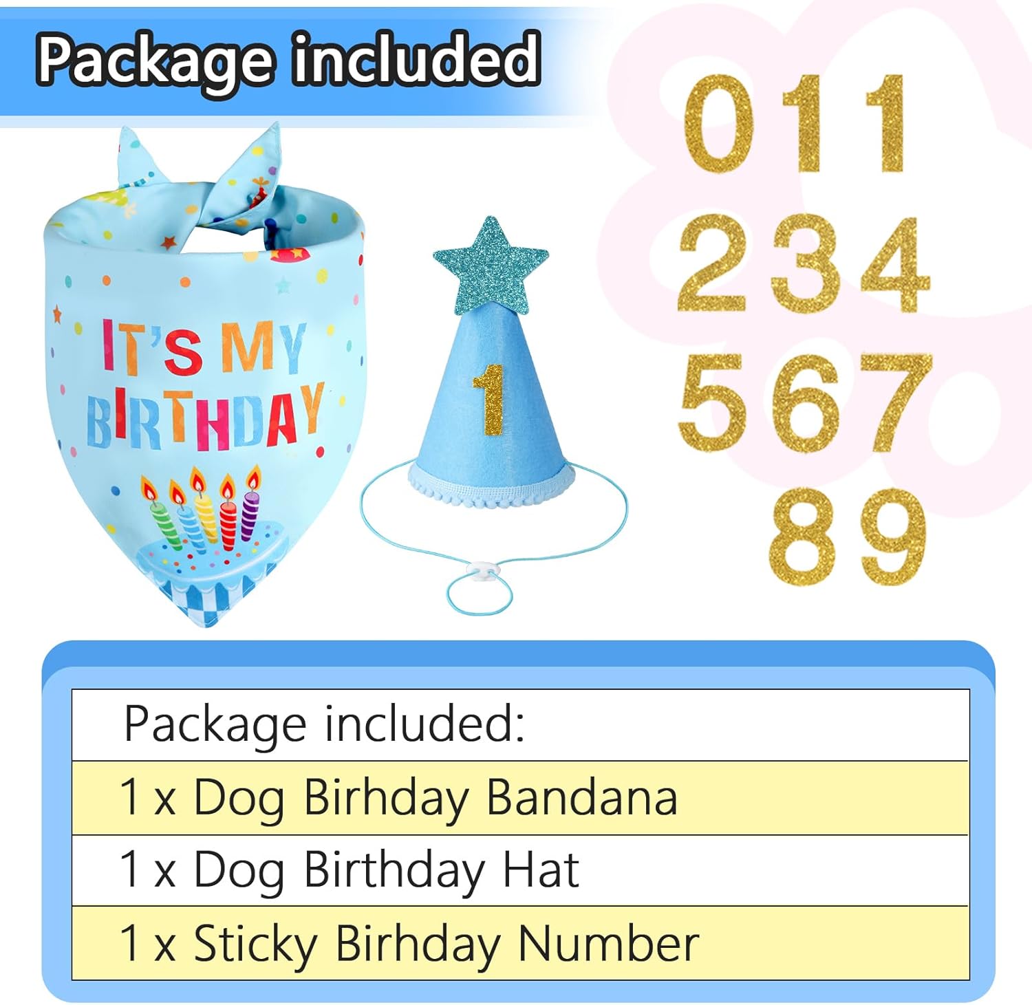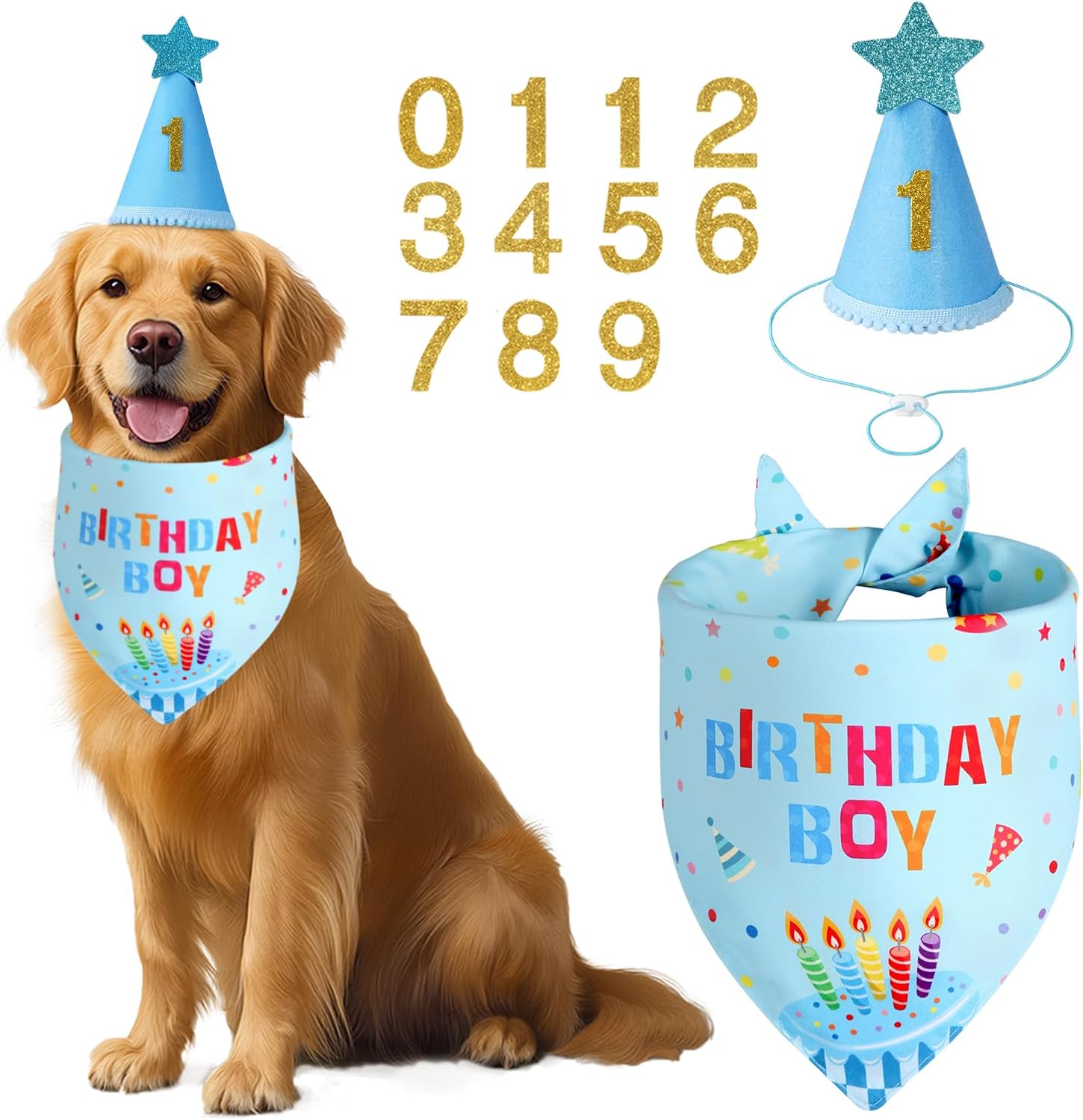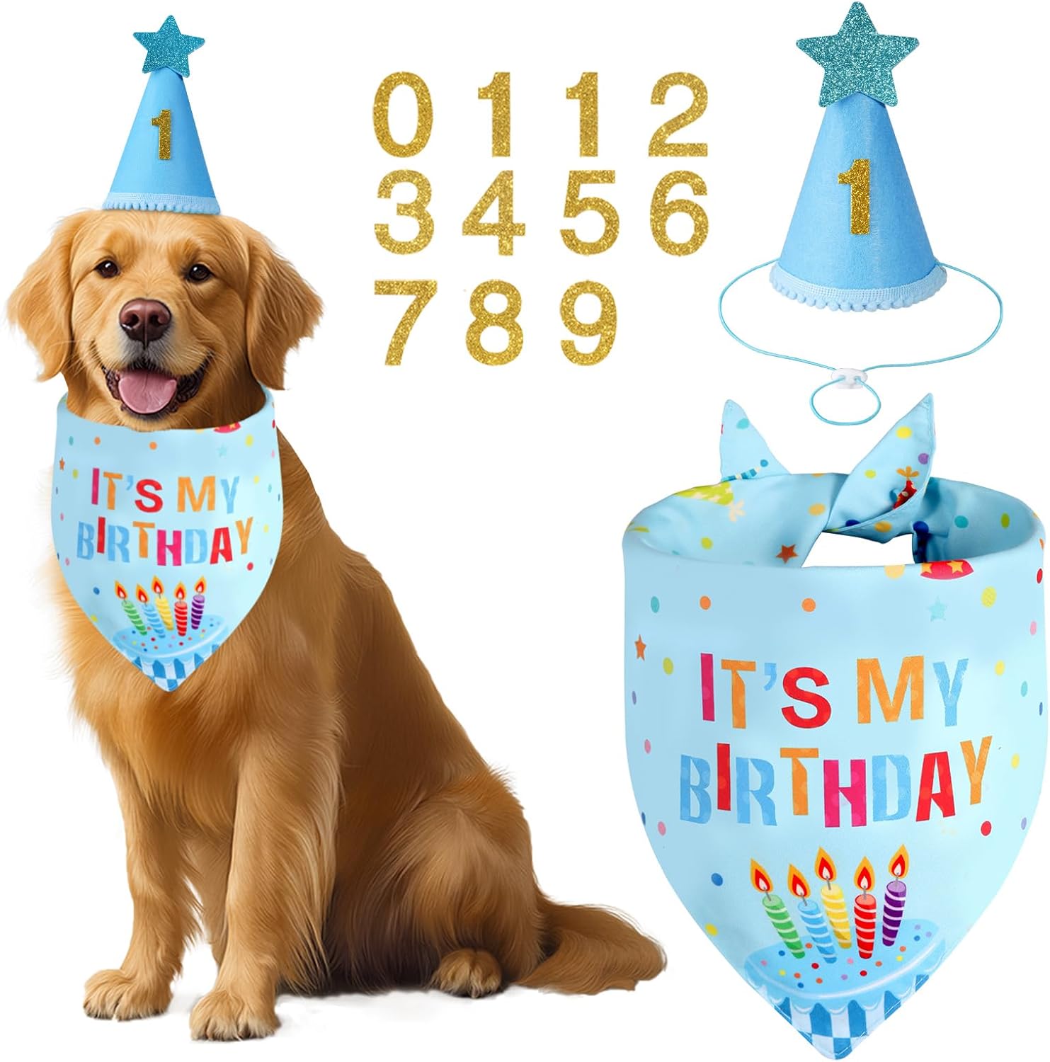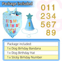 - Dog Birthday Party Supplies: 1PCS dog party hat with 0-9 numbers, 1PCS dog birthday bandana, Let the funny birthday set to decorate your beloved pet, allowing the camera to capture this wonderful moment, it is very interesting and cheerful!
