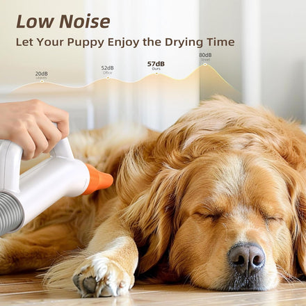 - 🐾 Gentle and Quiet: Operating at a soothing 60 dB, this high velocity blow dryer dog is as calming as a lullaby. This ensures your pet feels relaxed, not rattled, during grooming. Enjoy high-velocity drying in peace, ideal for any breed from Pomeranian to Golden Retriever.