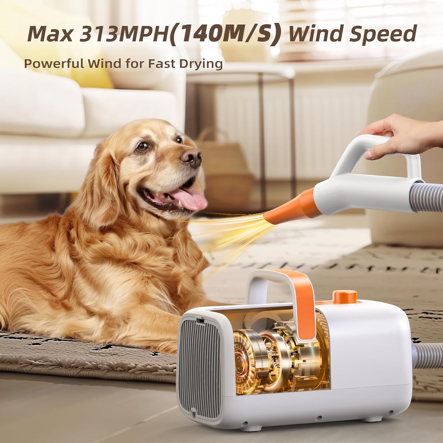 - 🐶 Smart Heating, Perfect Comfort: The dog blower groom dryer features a cold - warm - hot cycling mode and two precisely adjustable temperature settings (from 110°F to 140°F). Whether your pet has thick fur or is sensitive to heat, this dog dryer adapts with ease. The adjustable airflow suits any fur type, improving both health and happiness.