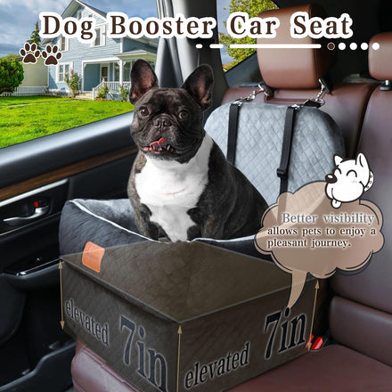 - 【FUNCTIONALITY】The 7-inch elevation of the car seat allows most dogs to effortlessly see the view out of the window, which helps them to avoid car sickness while riding anxiety, and the soft side is perfect for napping. Comes with an adjustable leash that can be attached to your dog's harness to keep them safe, and both the front or back seats can be easily installed. This dog booster seat is the ideal accessory for long trips with furry friends.