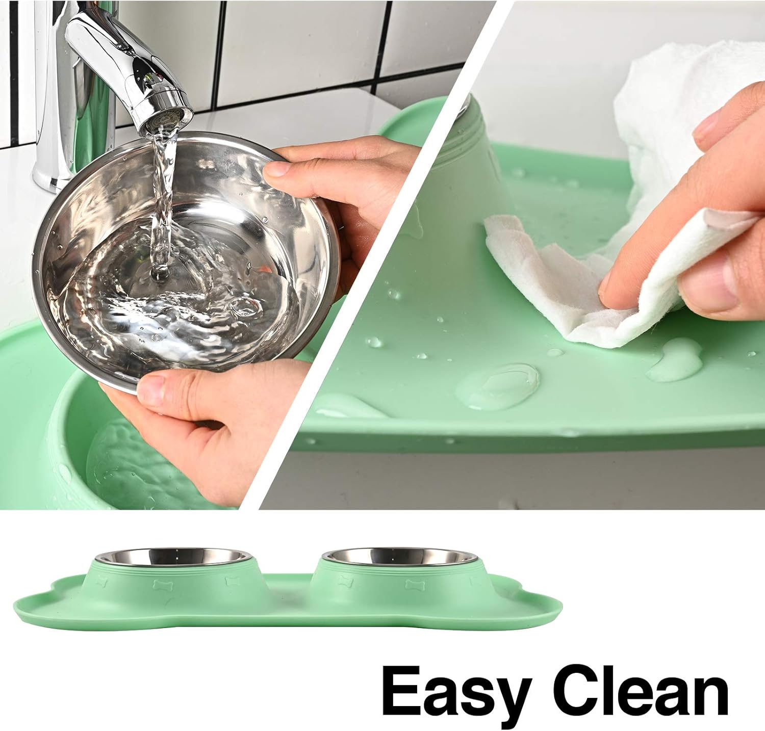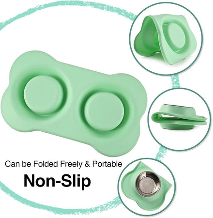- EASY TO CLEAN&STORAGE: both bowls and the mat are easy to separate for washing, dishwasher safe; flexible silicone mat is foldable for travel and storage