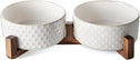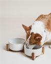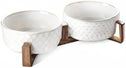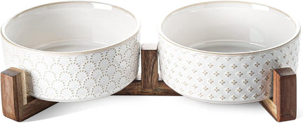 - Acacia Wood Stand: Adopting with classy acacia wood stand, this aesthetically pleasing ceramic dog bowls with stand fits perfectly with any home decor style. Please note: there are nails inside the wooden stand for holding, please be careful to prevent your dog from chewing on the wooden stand to avoid hurting his tongue