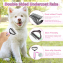 • 【Dog Brush Tools】Double side dematting comb for dogs with rounded teeth, would remove the undercoat knots tangles. Deshedding dog brush with easy cleaning press button and unique particles, quickly and gently removes loose hair. Flea comb could clear up the flea infestation and dander