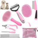 Dog Brush Dog Grooming Kit 6PCS Dog Brush for Shedding-Dog Brushes for Grooming, Dematting Comb for Dogs, Cat & Dog Nail Clipper with Nail File, Flea Comb, Dog Bath Brush-Pink