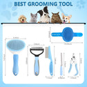 • 🐾【Professional Pet Grooming Kit】6 Pcs pet grooming supplies can meet your pet's daily grooming needs. One set includes a slicker brush for dogs, dematting comb, flea comb, dog bath brush and nail clipper with nail file to keep your pet in top shape. The kit is designed in blue sky style, perfect for your gift giving!