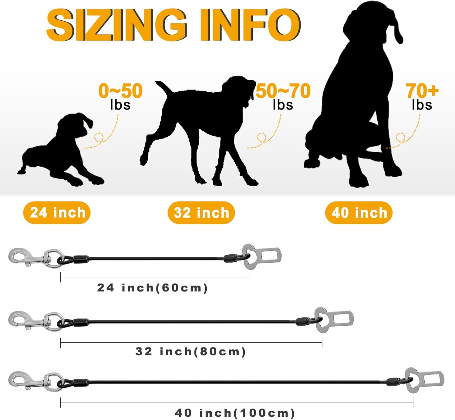 - 【Dog Seatbelt】:The heavy dog seatbelt has 3 sizes for different pet sizes,you can choose the right size to restrain the dog's active space in the car.Your pets can only freely sit, stand and lay down, to avoid danger caused by being too active.