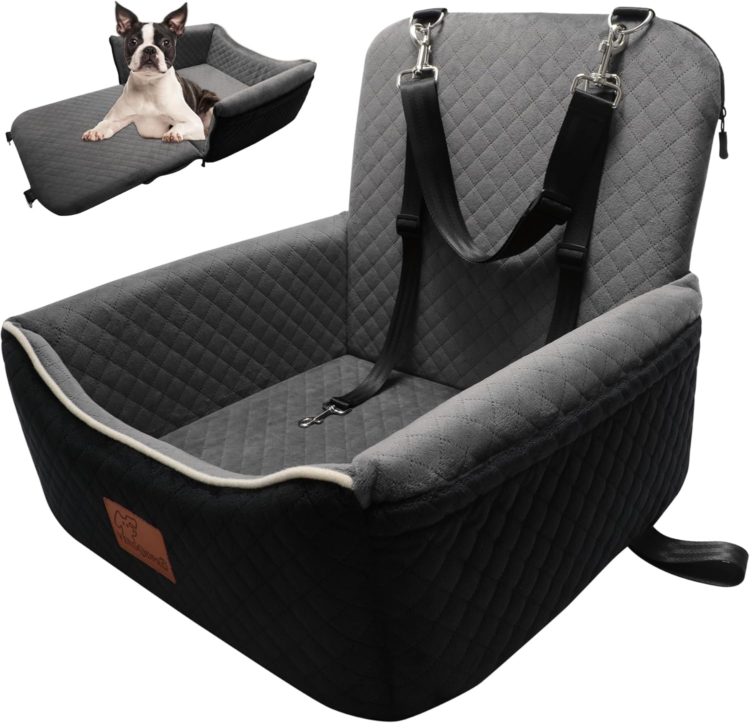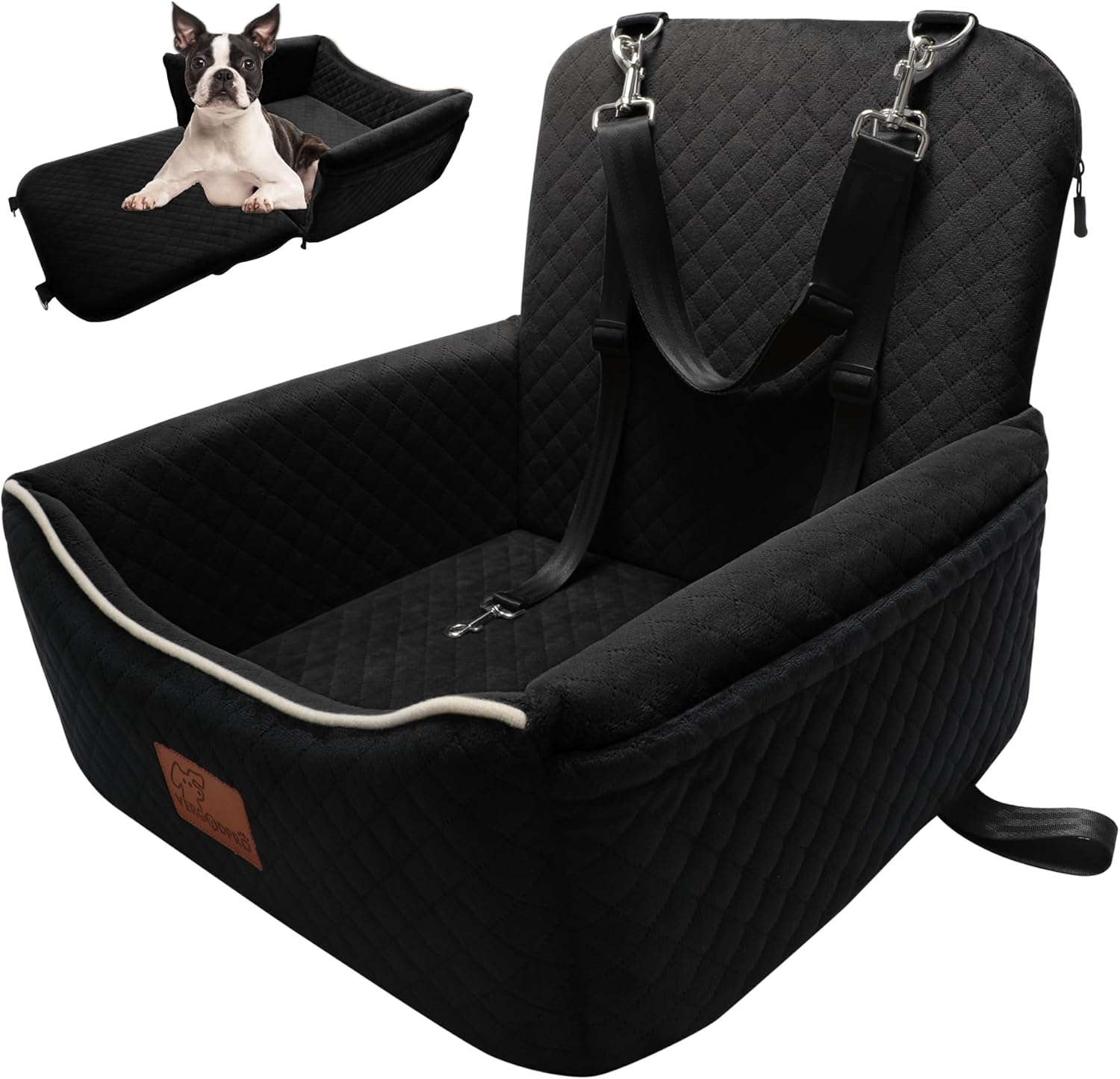 - 【EASY TO USE】The pet car seat can be installed in just three steps. Pass the car seat belt through the reserved safety ring at its bottom,insert the seat belt buckle,secure the headrest seat belt and adjust it to the appropriate length. Finally, put your furry friend into the dog car seat and fasten the seat belt.You will have a pleasant journey.