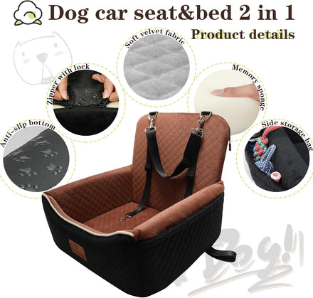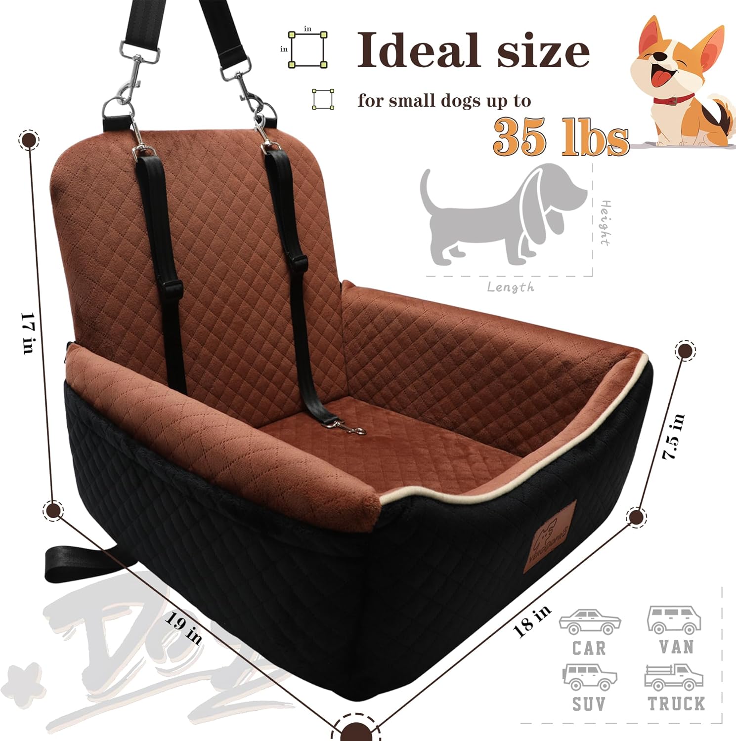 - 【COMFORT】The dimensions of the dog car seats are 18(L)in*19(W)in*17(H)inches,Opening the zipper of the backrest can turn it into a dog bed that is 35 inches long and 18 inches wide.It uses super soft velvet fabric and high-resilience memory foam,allowing your furry friends to rest happily inside.