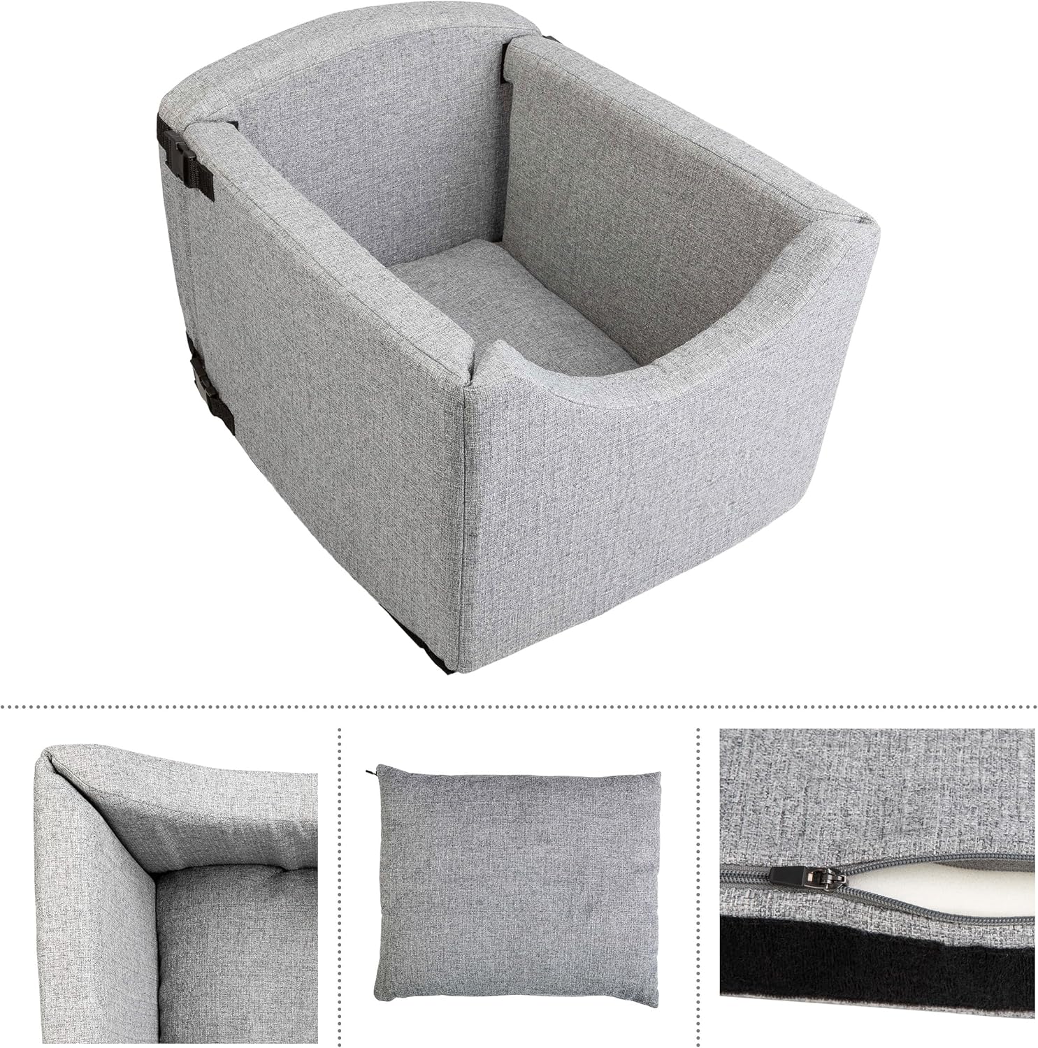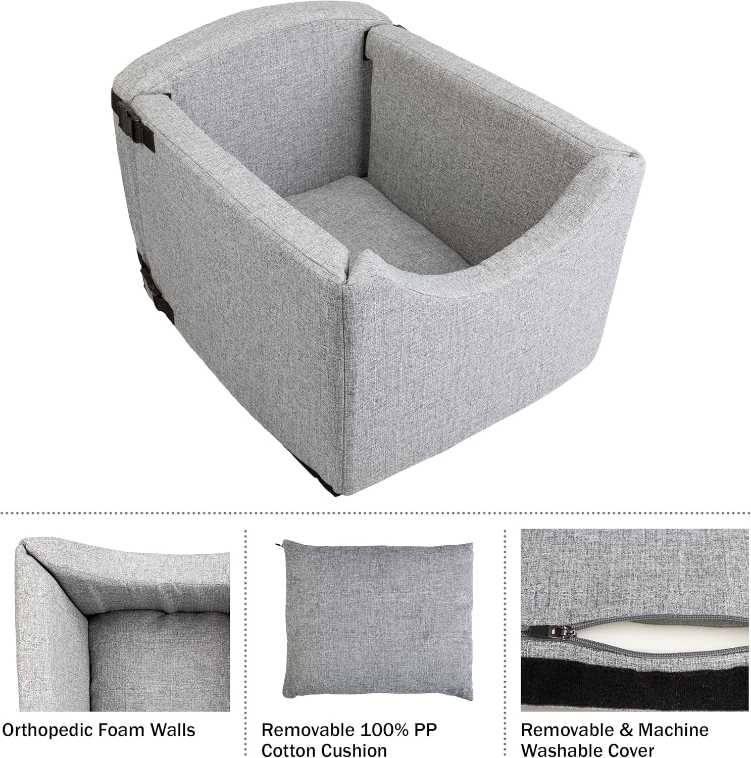 - ORTHOPEDIC COMFORT - The orthopedic foam walls and removable 100% PP cotton cushion on the dog seat keeps your furry friend comfortable during both long and short road trips. The soft, polyester cover is removable and machine washable for easy cleaning.