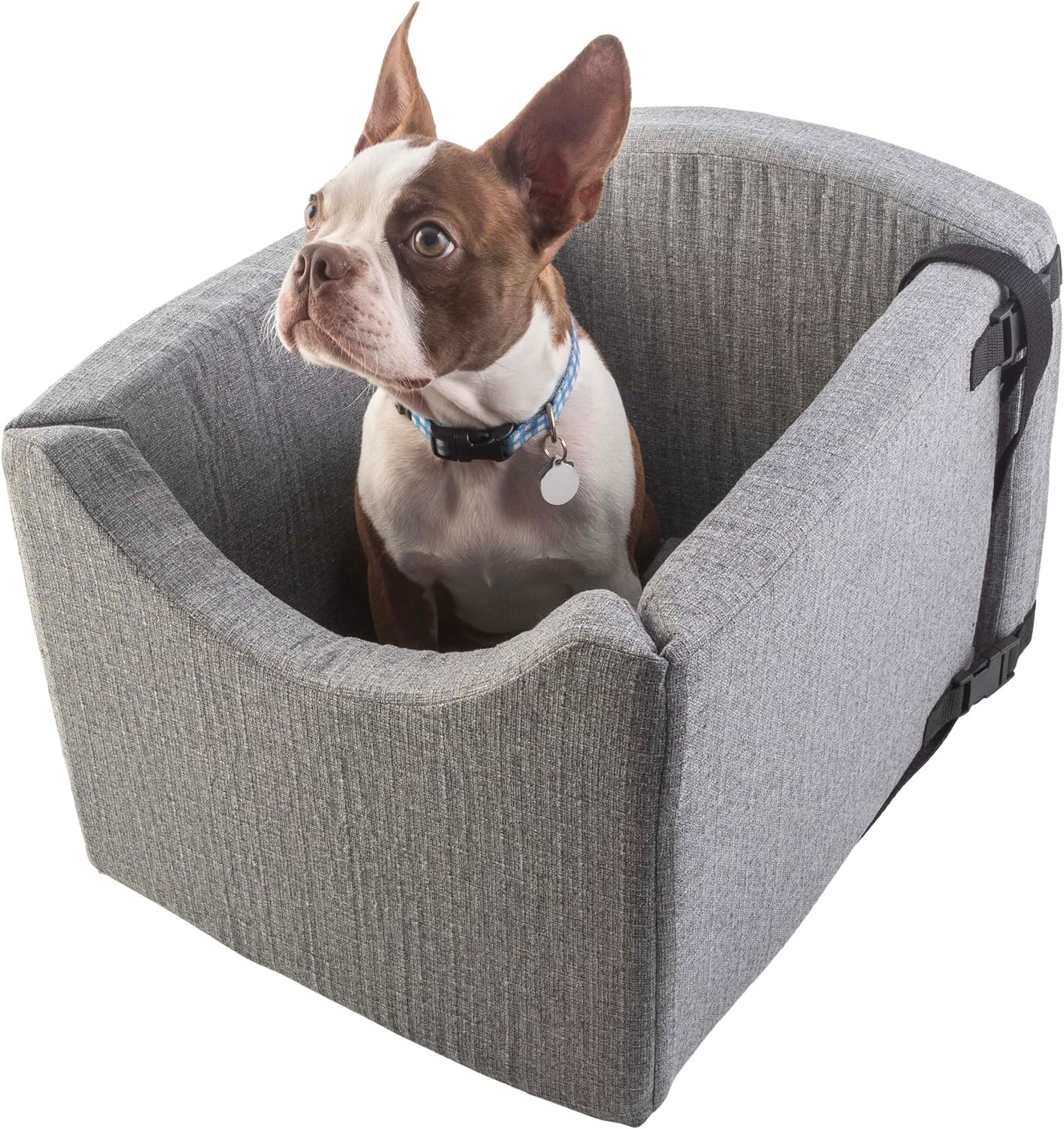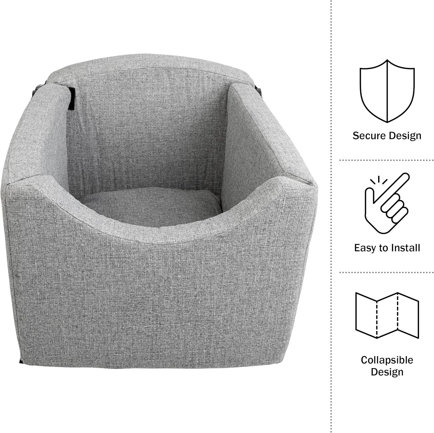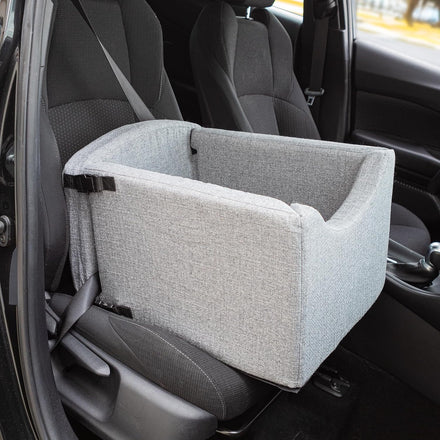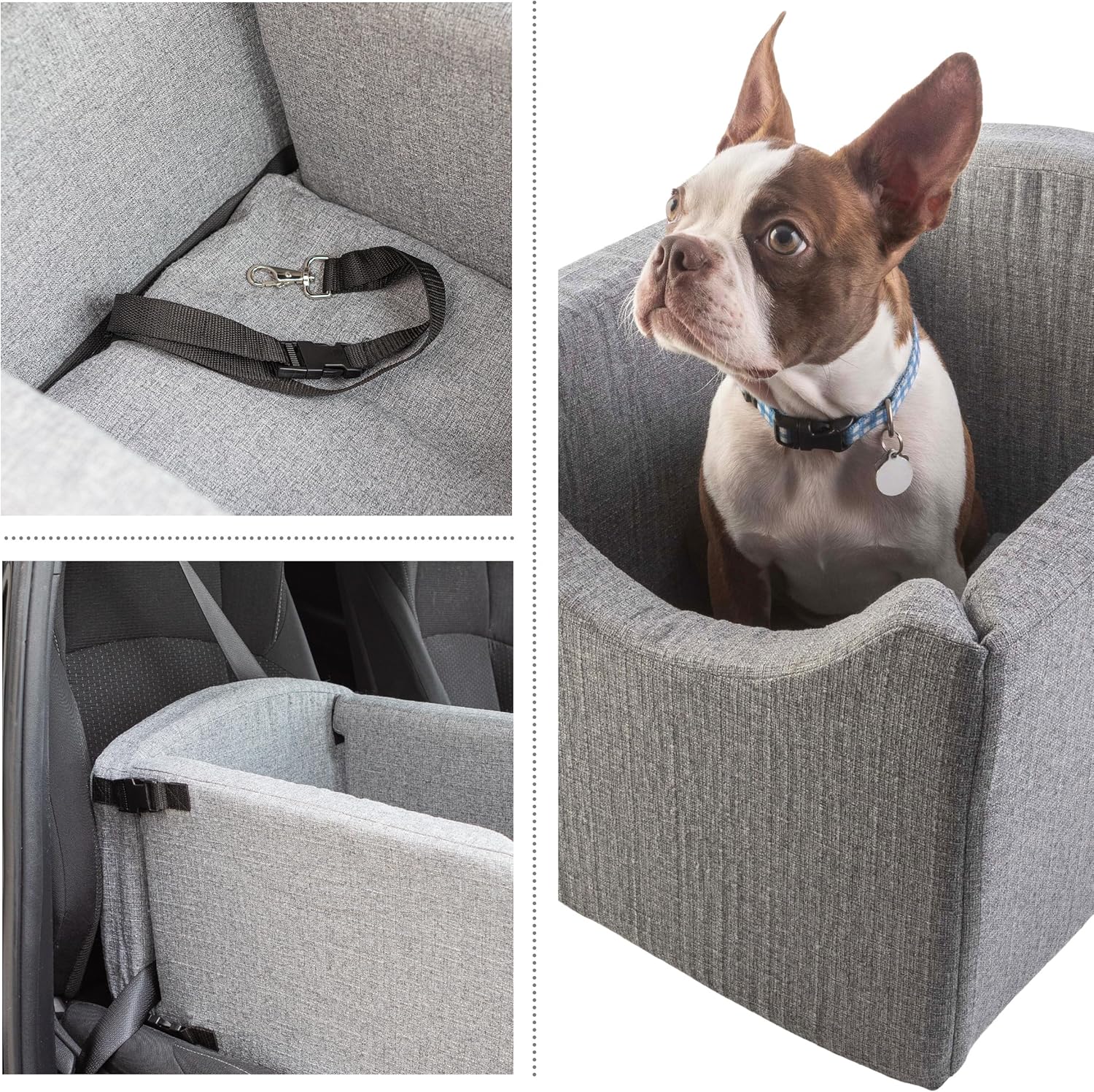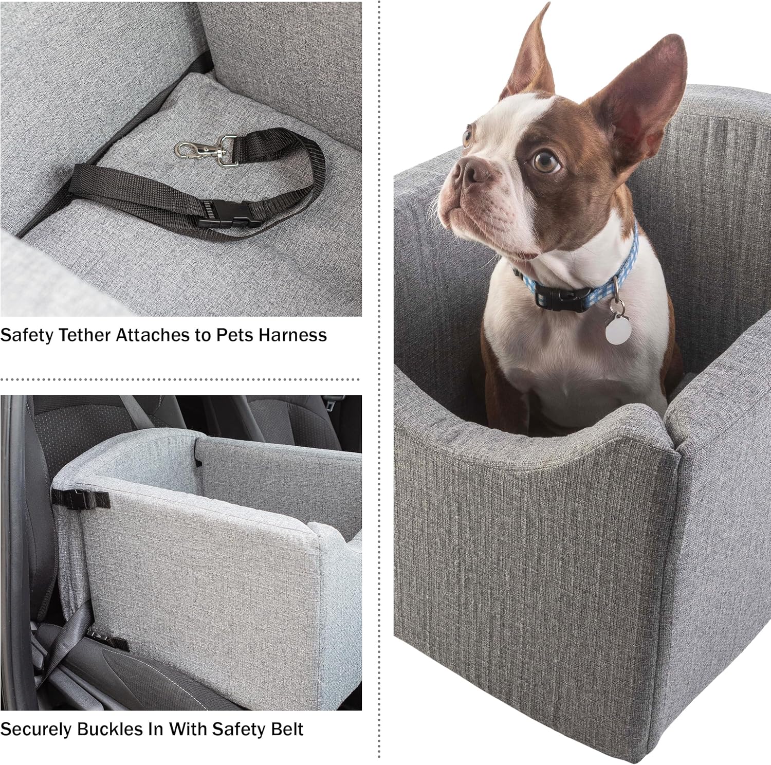 - SECURE DESIGN - This dog seat for car securely buckles in with your seat belt conveniently hidden under the removable cushion. The dog car seat bed features a safety tether that can be attached to your pet’s harness for a distraction-free drive.