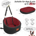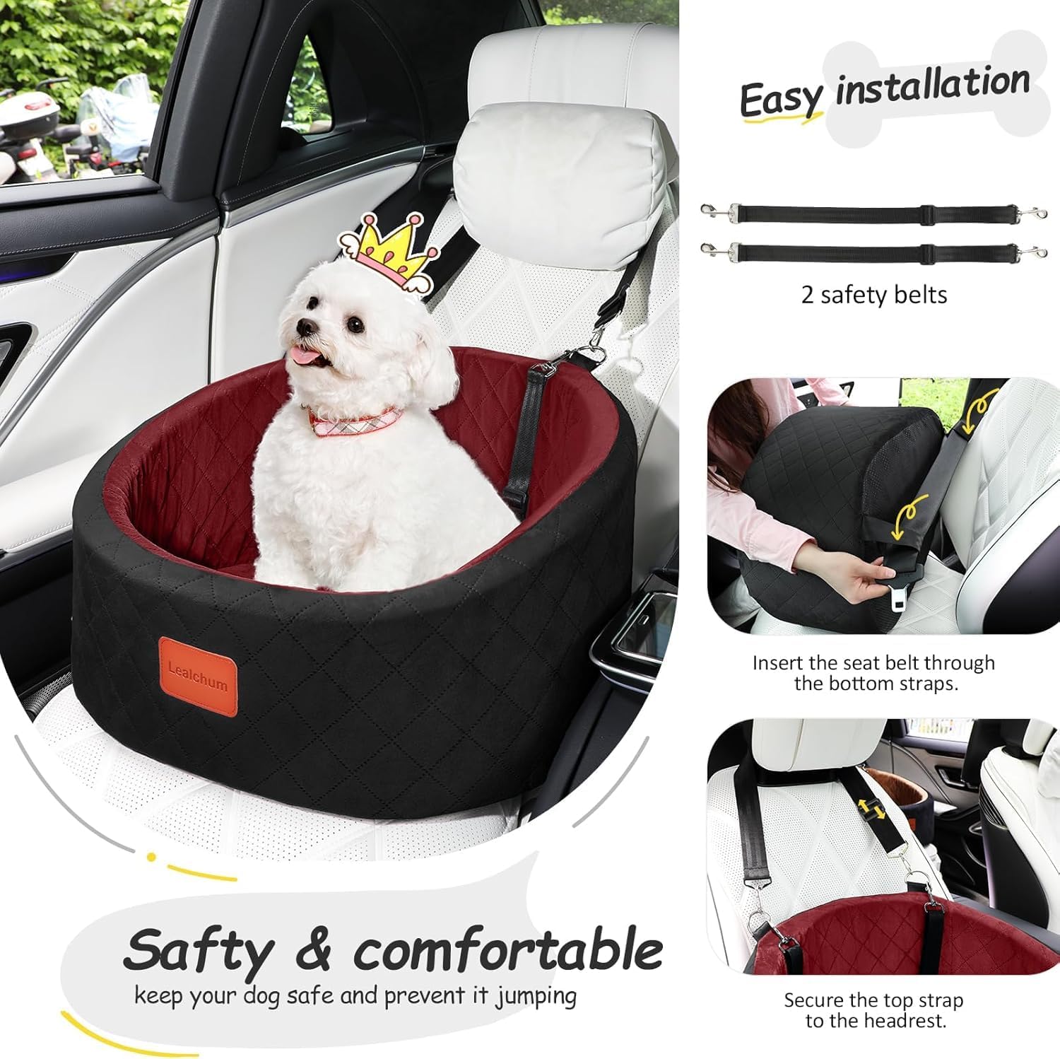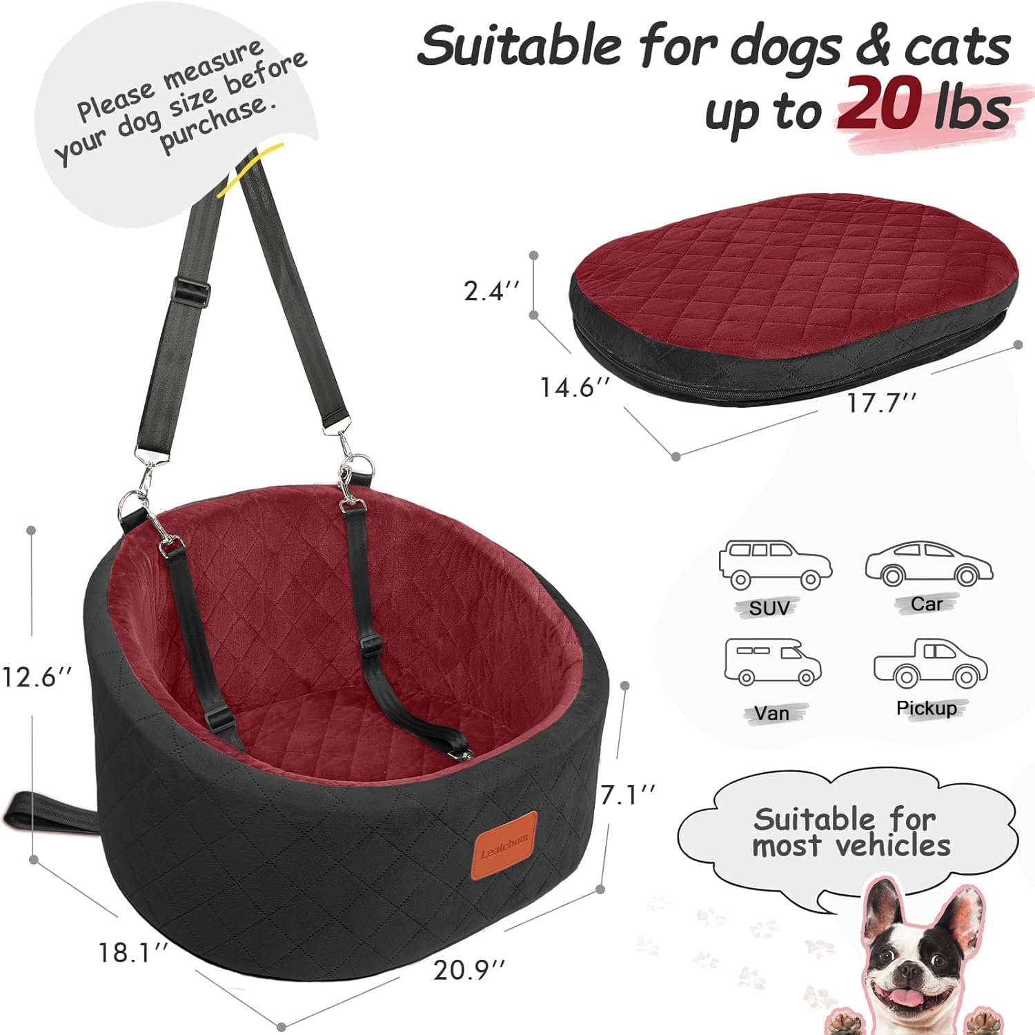 Dog Car Seat for Small Dogs,Comfy Pet Travel Car Bed with 2 Clip-On Leashes,Fully Removable & Washable,Non-Slip Base with Seatbelt Channle,Easy to Install (Black/Red, Small)