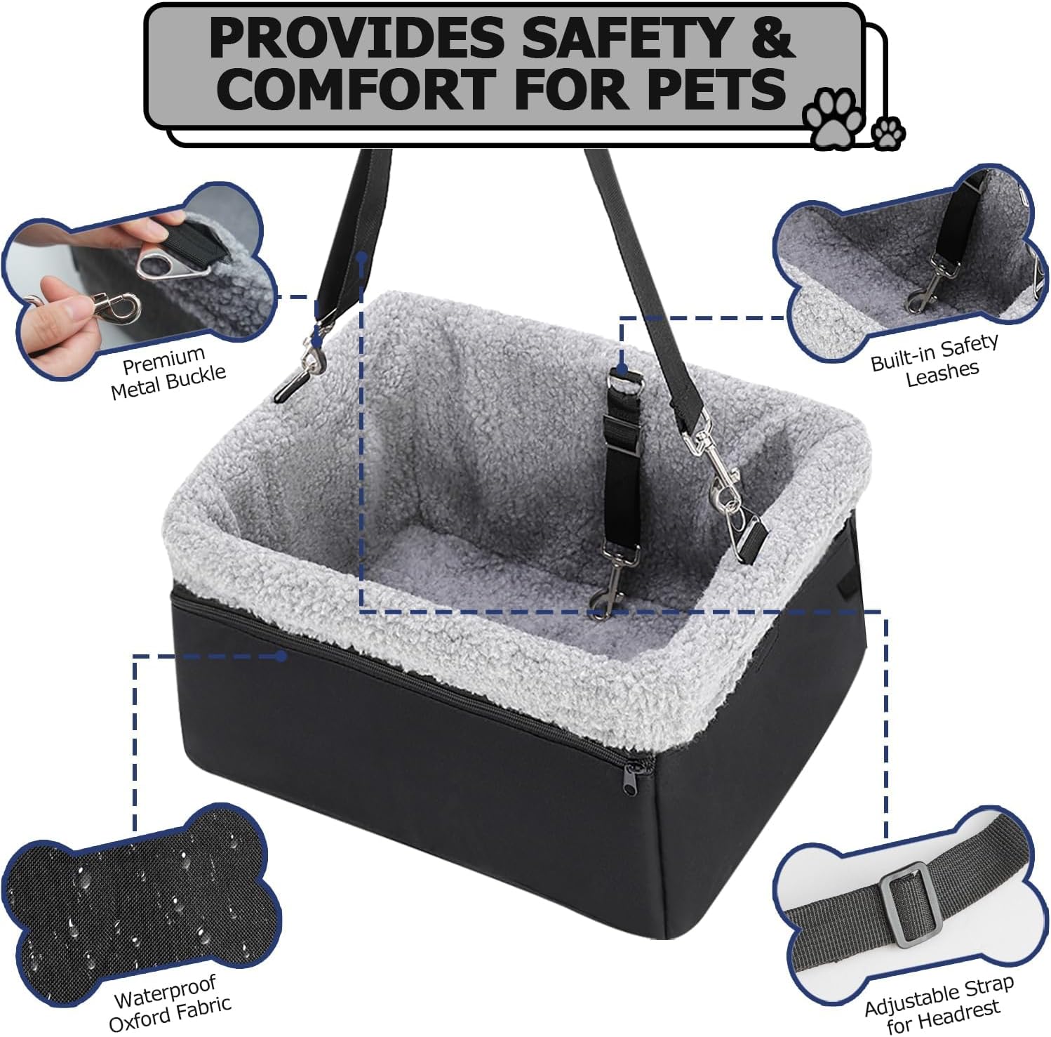 - Keep your pet safe :Our small dog booster seat comes with an adjustable strap that clips onto the collar from inside the booster seat, providing extra protection for your pet in an emergency