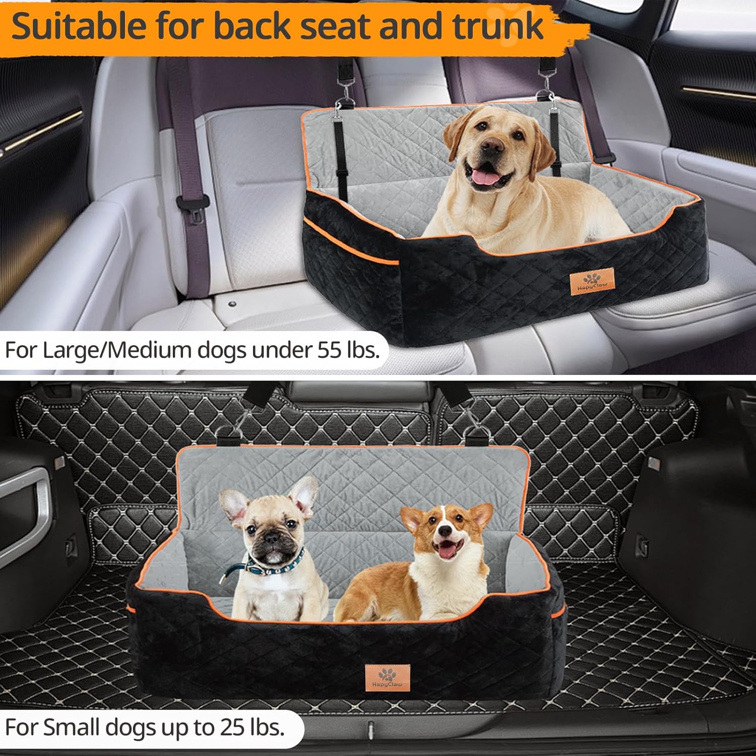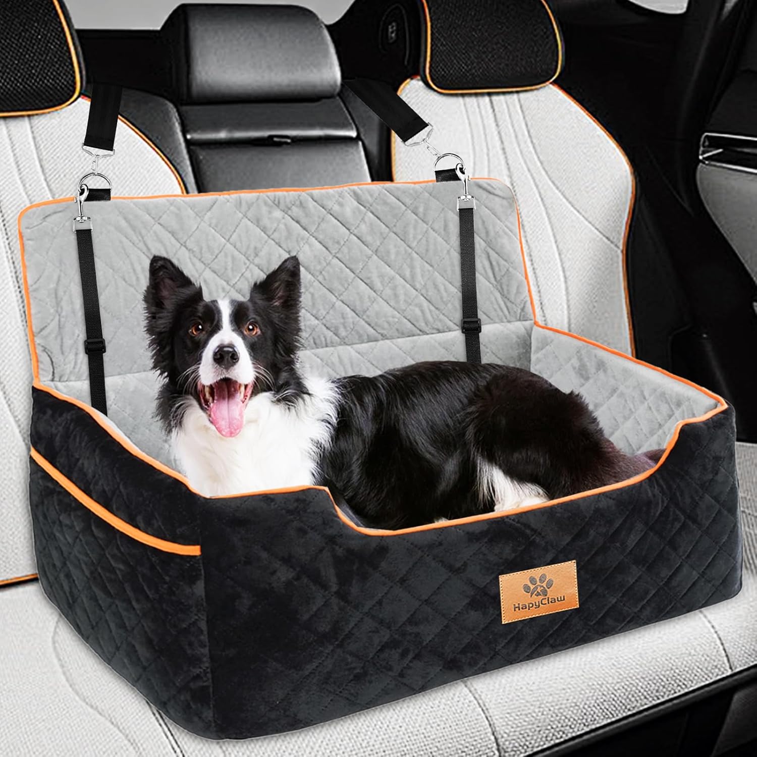 - Comfortable & Sturdy: This large dog car seat are made of high-quality short plush fabric, and the interior is filled with high-density sponge. This travel seat for dogs provides optimal support and comfort during car rides. Keeps your pet warm and cozy while ensuring the booster seat's durability. Your pet will love the comfort of our booster seat, and you'll appreciate its long-lasting quality