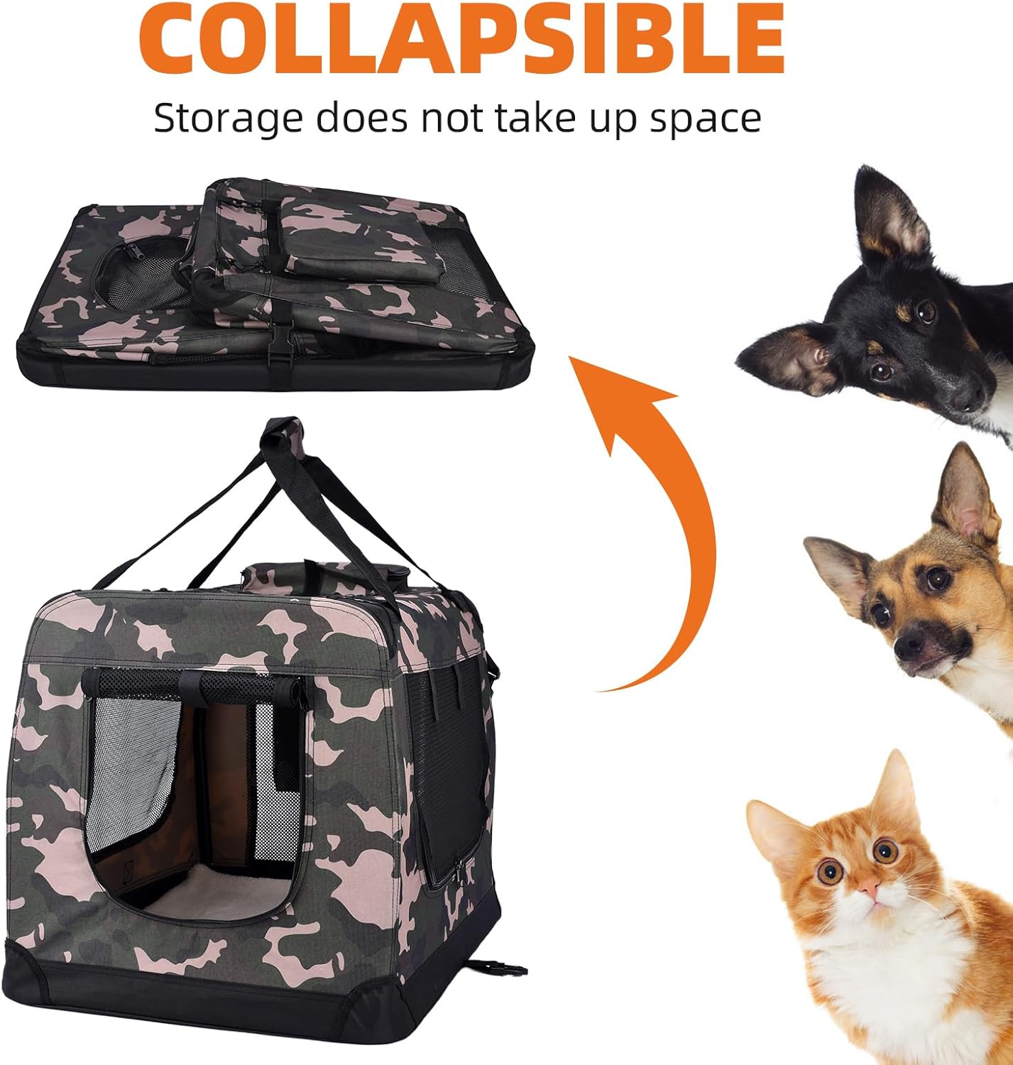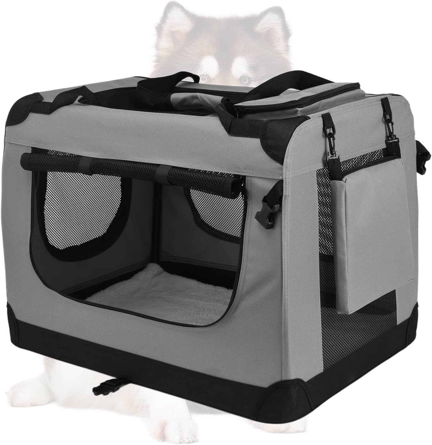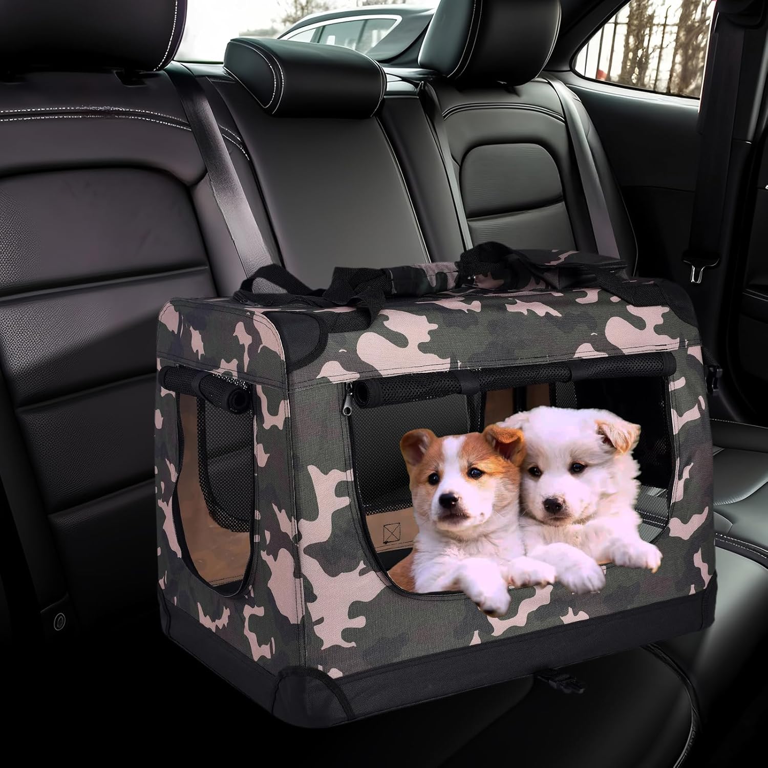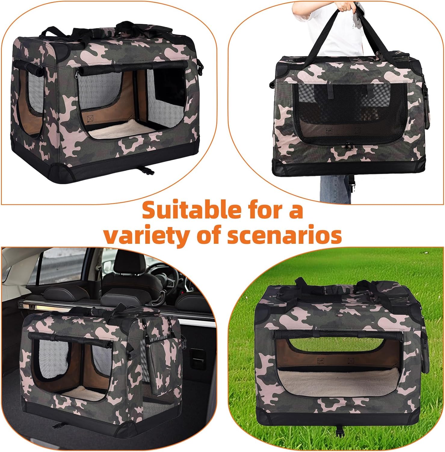 - PORTABLE FOLDING: The new pet carrier is collapsible for easy storage when not in use; our car dog crate is designed with a top strap, perfect for traveling, camping, and vet visits.