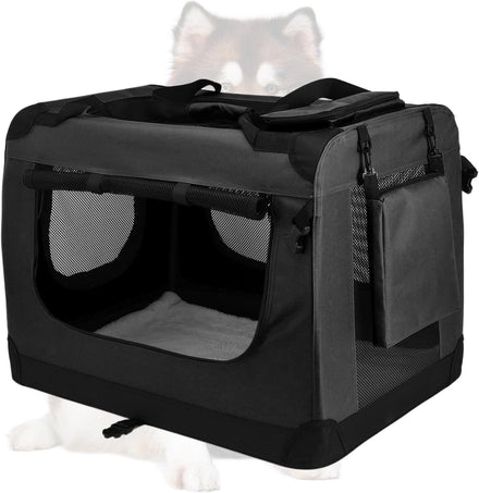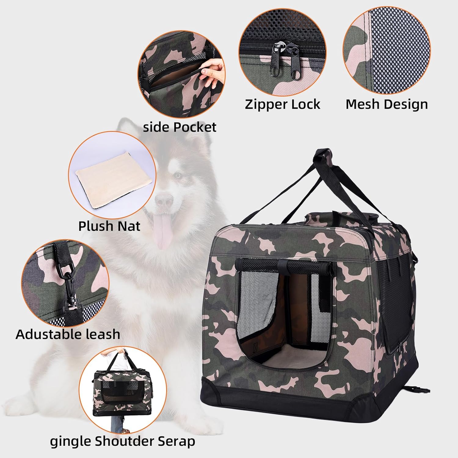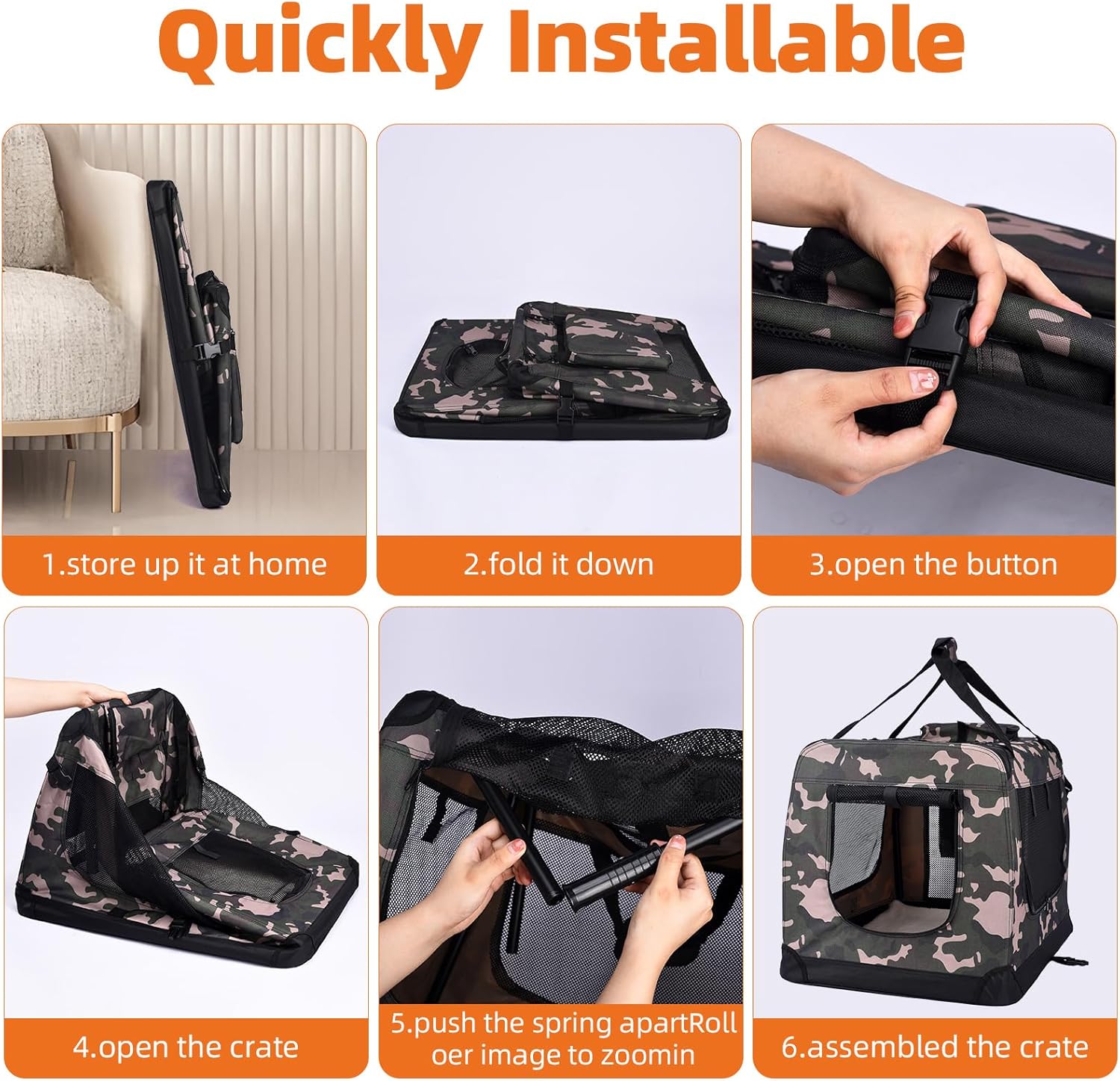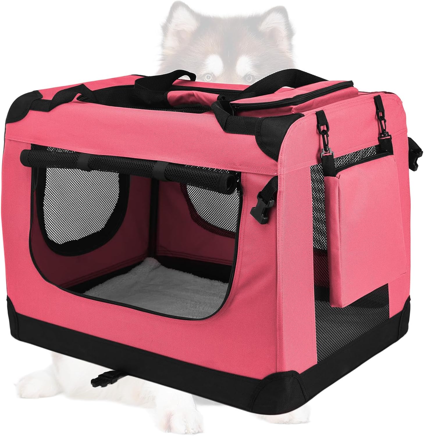- PORTABLE FOLDING: The new pet carrier is collapsible for easy storage when not in use; our car dog crate is designed with a top strap, perfect for traveling, camping, and vet visits.
