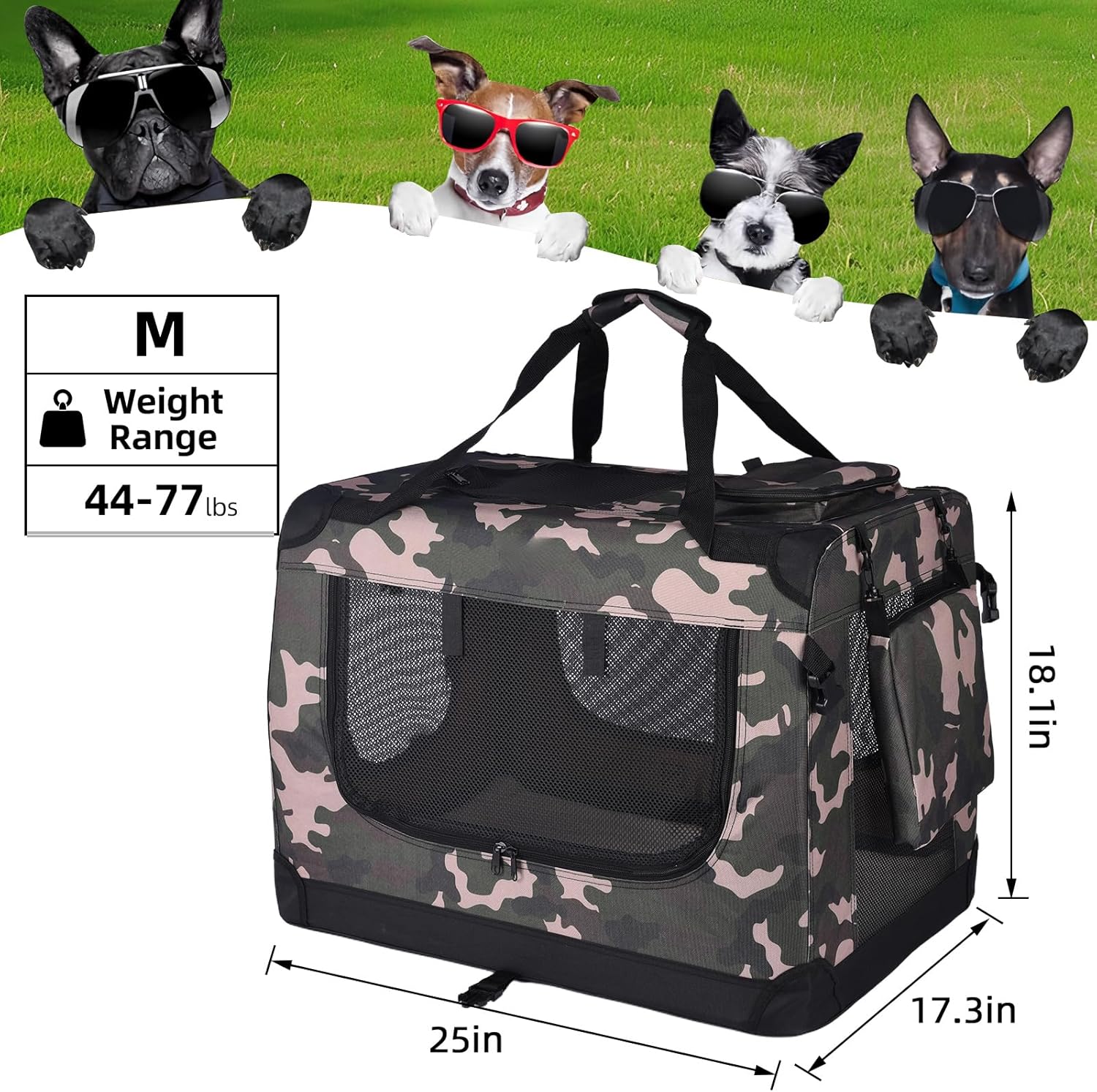 - EASY CLEANING: This travel dog crate is made of high quality PVC waterproof fabric, which is stain resistant and easy to clean, measuring 25×17.3×18.1 inches; the dog carrier for medium dogs is ideal for traveling with your dog.