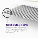 - ROUND & GENTLE COMB TEETH: Unlike dematting combs with sharp teeth, this dog grooming comb features round teeth that break up tangles +effectively remove loose hair, dander & dirt trapped beneath fur.