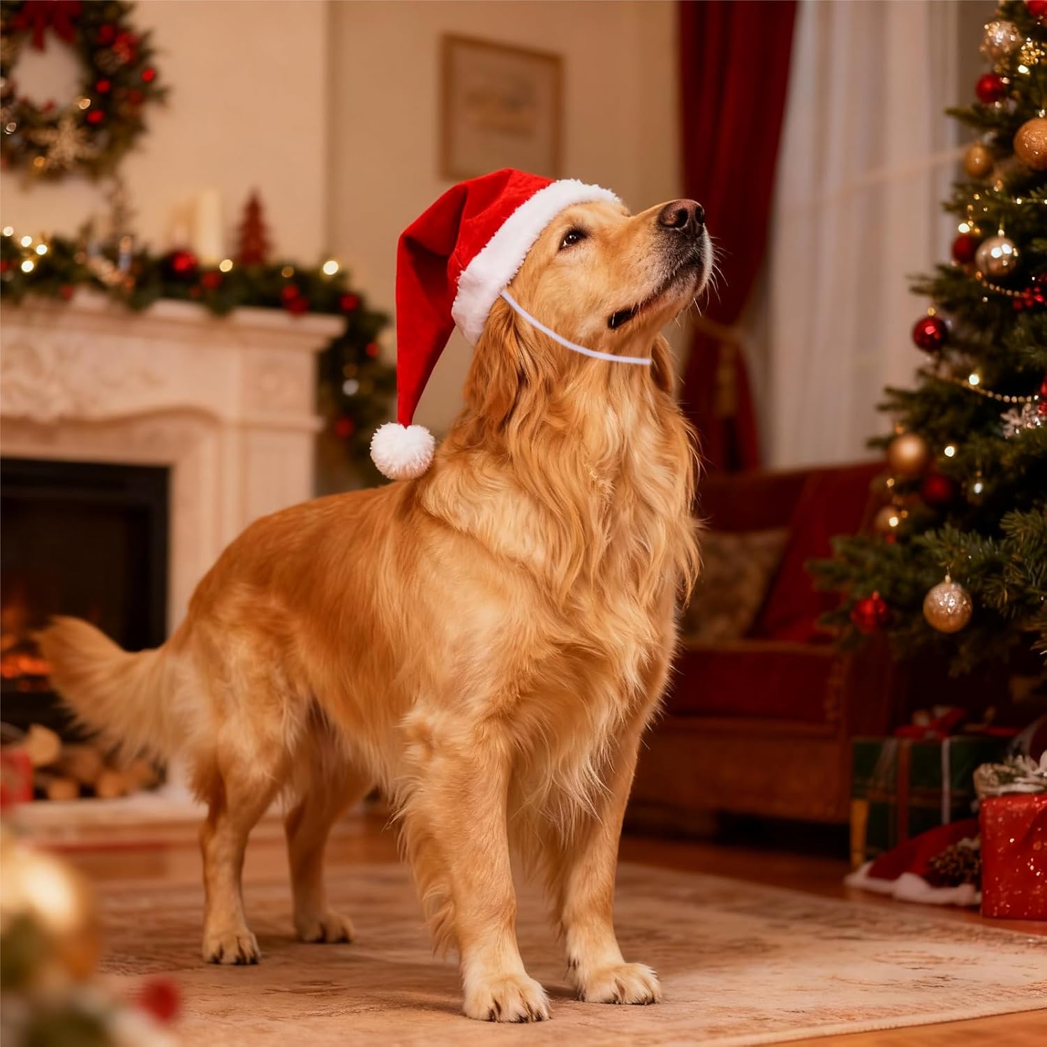 • Size:hat approx.20*14 cm,with a elastic band. Christmas Hat fits most medium&large dogs&cats.