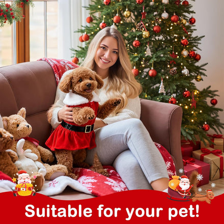 - Christmas Pet Gift: This Christmas dress for puppies spreads festive perfectly, making the Santa dog outfit ideal for holiday and photoshoots. It's a charming way to include your furry friend in celebrations while creating unforgettable memories—a fun yet practical gift that boosts holiday spirit while keeping your pet warm and stylish. Suitable for Christmas festivities, parties, wedding, cosplay and daily wear, this outfit helps your pet steal the spotlight on any occasion!