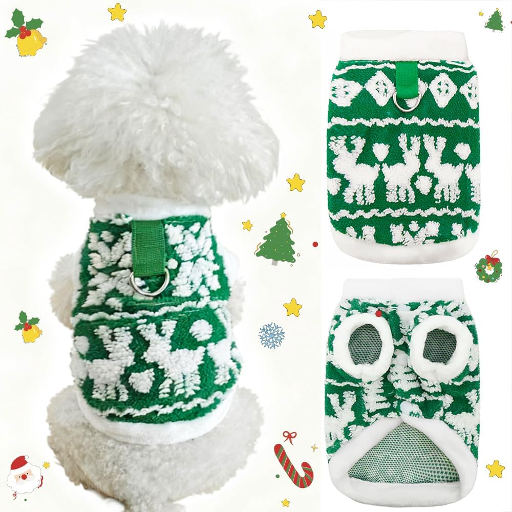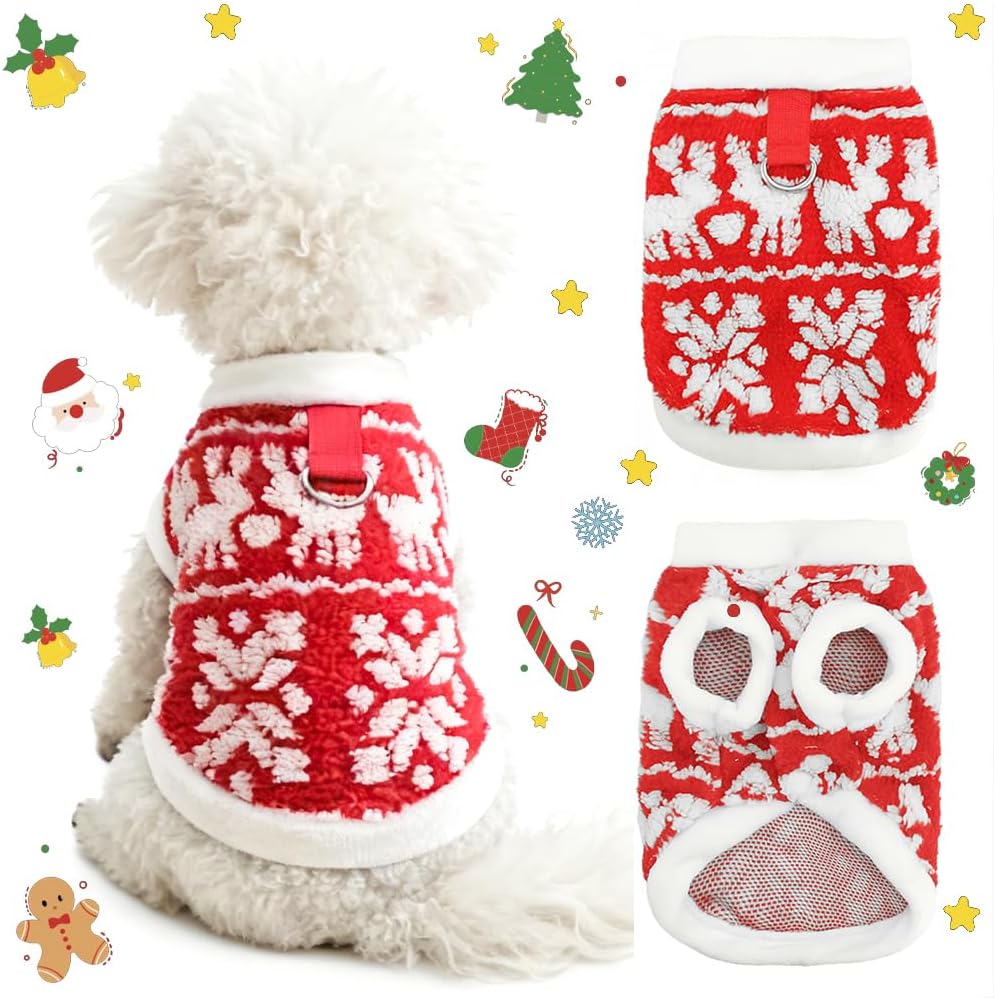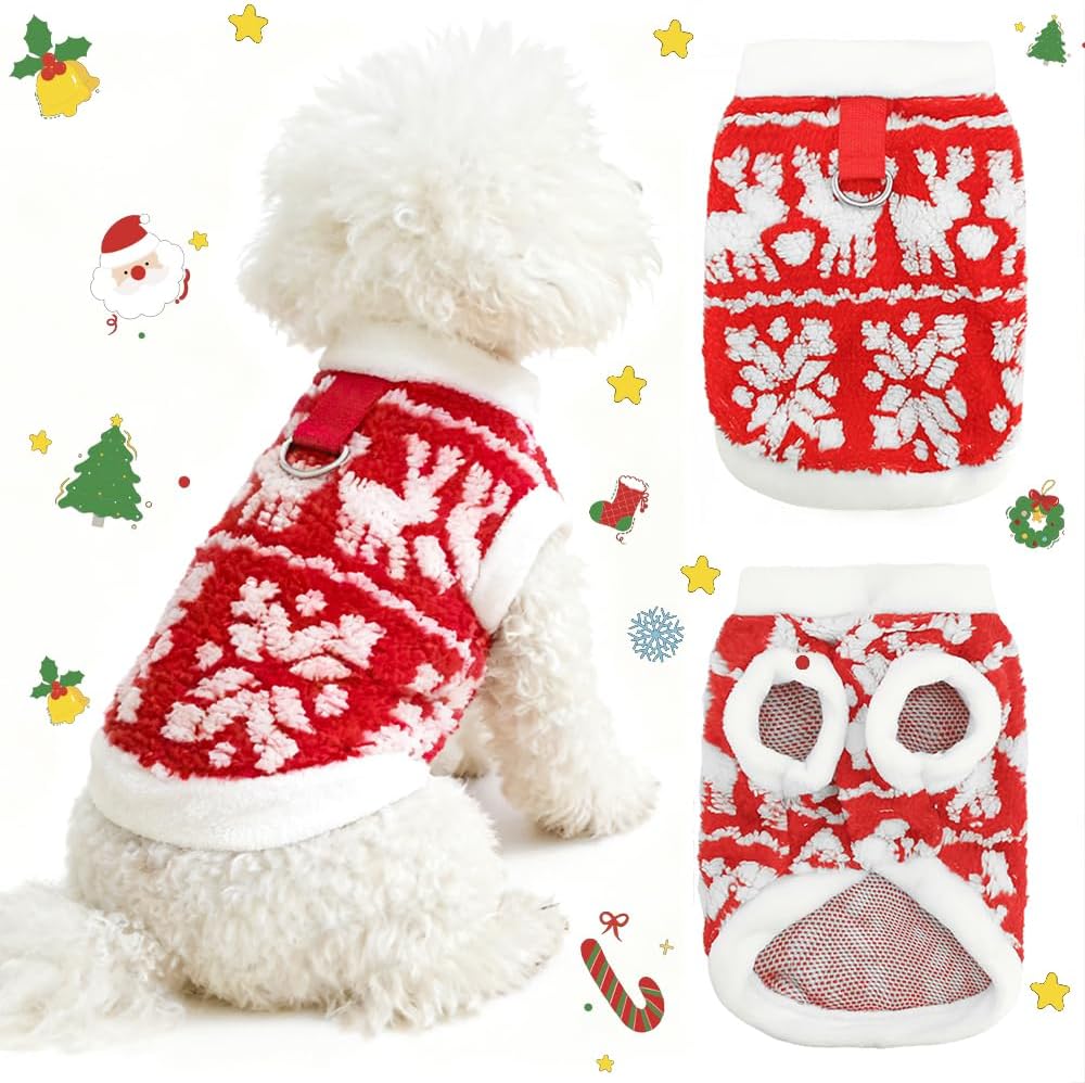 • Easy to put on and take off: This puppy Christmas fleece features a button closure design, making it convenient to put on and take off. It has a traction buckle on the back, which can be directly used to leash the dog.