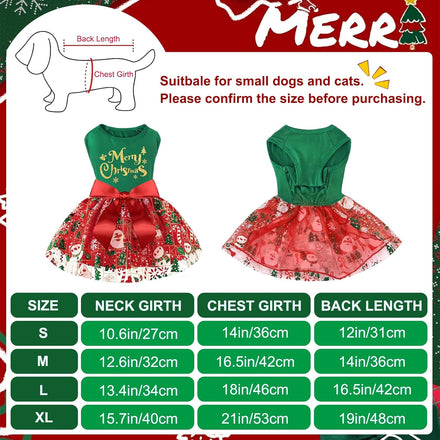 - S/M/L/XL Size to Choose: Four sizes Christmas pet dress are available for small dogs and cats. Please refer to our size chart carefully and select the right size for your pets before purchasing