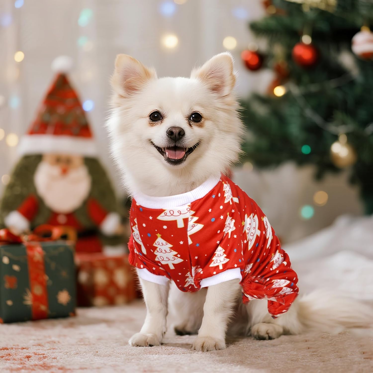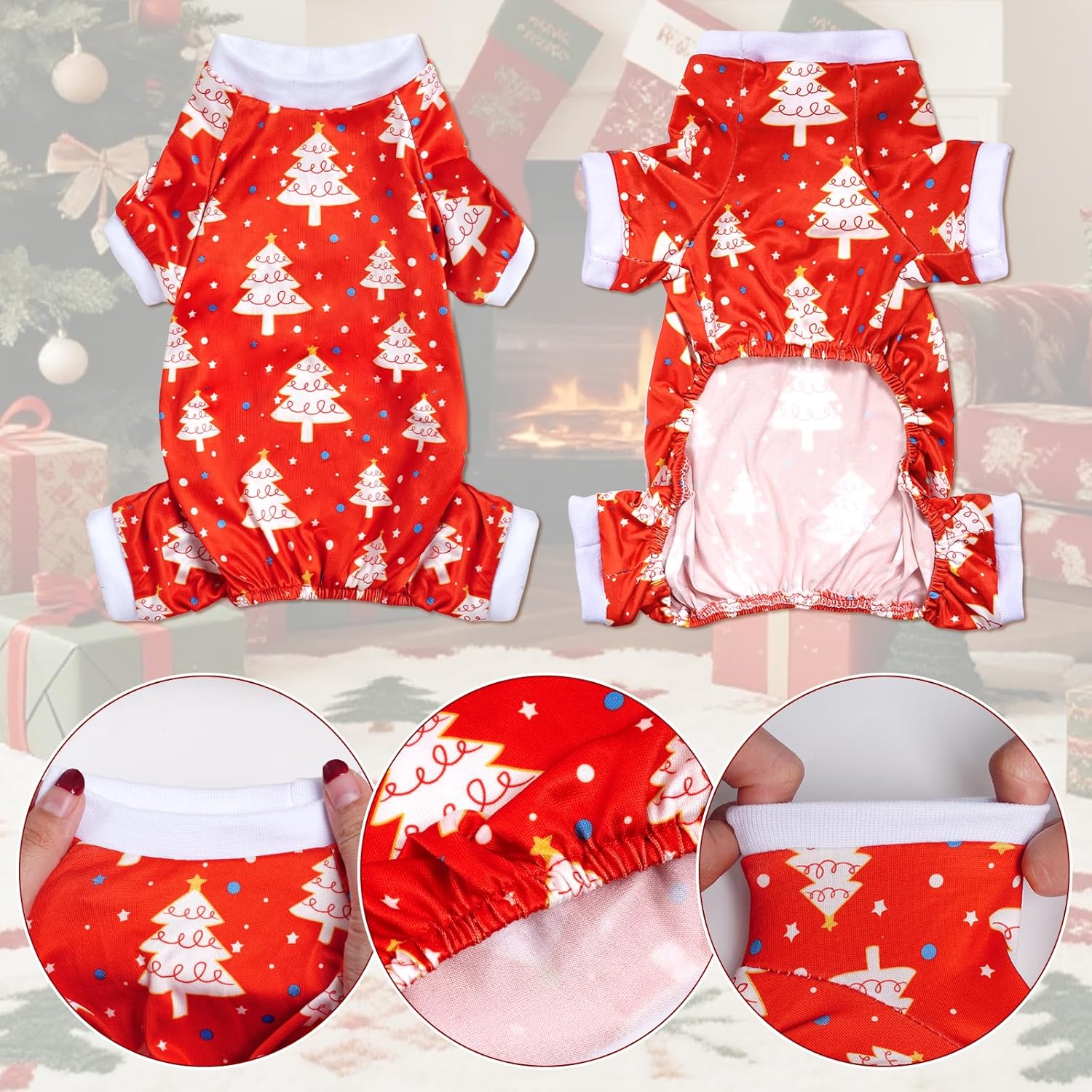 • Adorable Christmas Dog Pajamas: You'll receive a red dog Christmas pajama set, letting your puppy and kitten enjoy their own festive-themed sleepwear this holiday season.