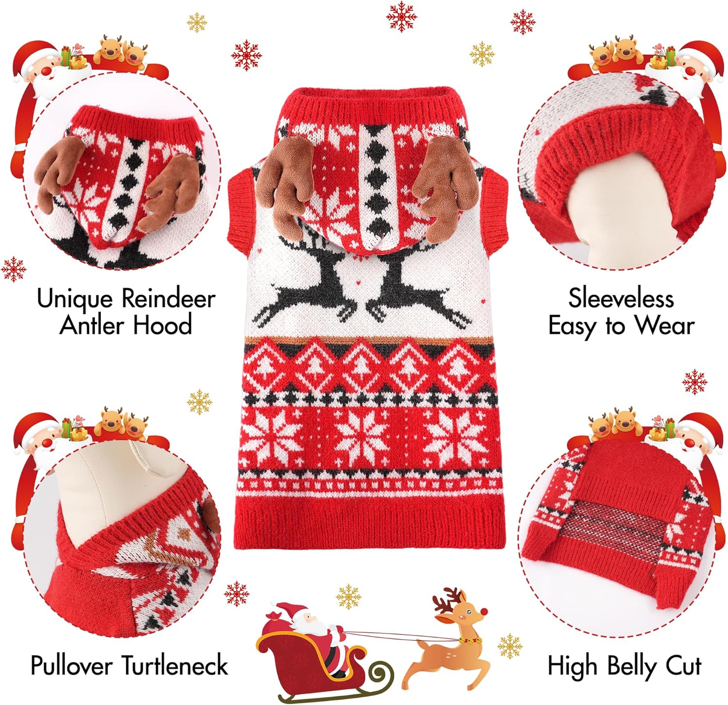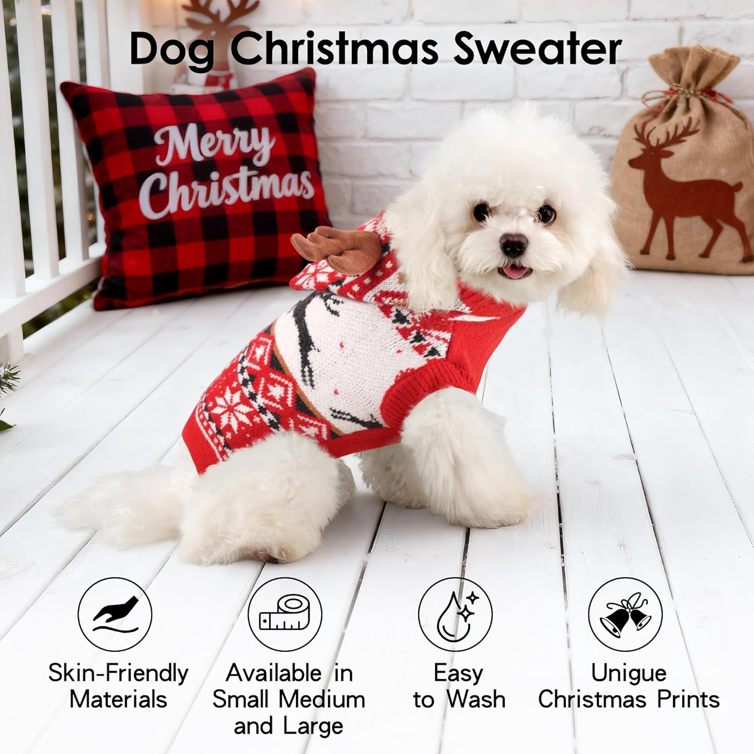 - DOG CHRISTMAS SWEATER: BAOBICUTE dog sweater features a classic red pattern design with christmas reindeer antler. Let the dog christmas outfit light up your fur friends’ christmas spirit, making them the center of attention whether for daily outings or festive parties
