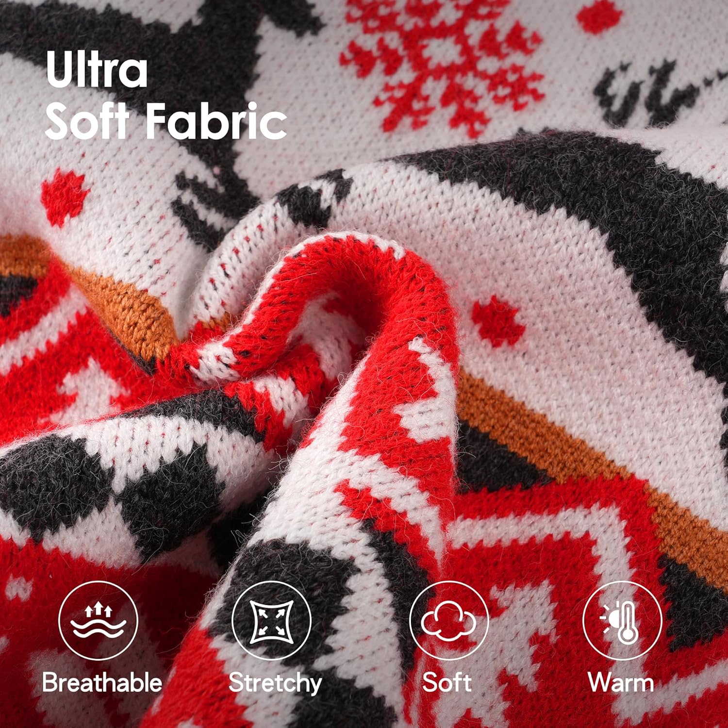 - SOFT ACRYLIC KNIT FABRIC: Crafted from premium acrylic knit, BAOBICUTE christmas dog sweater is incredibly soft, lightweight, and breathable. Its skin-friendly texture feels gentle against your pet clothes, making it ideal for sensitive skin. With just the right stretch and a cozy yet non-bulky fit, this funny dog sweater provides warmth without restricting movement—keeping your fur baby comfortable and free all day long. Perfect for breezy walks or cozy naps at home