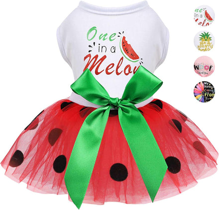 Dog Clothes for Small Dogs Girl, Spring Pet Dress Puppy Princess Tutu Cute Puppy Tulle Dresses Pet Clothes Cat Apparel Chihuahua Yorkshire Outfits (Red Watermelon, XS)