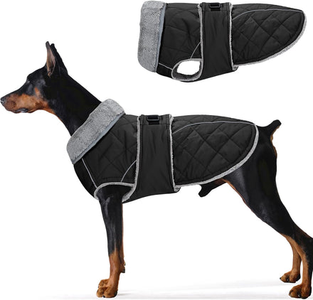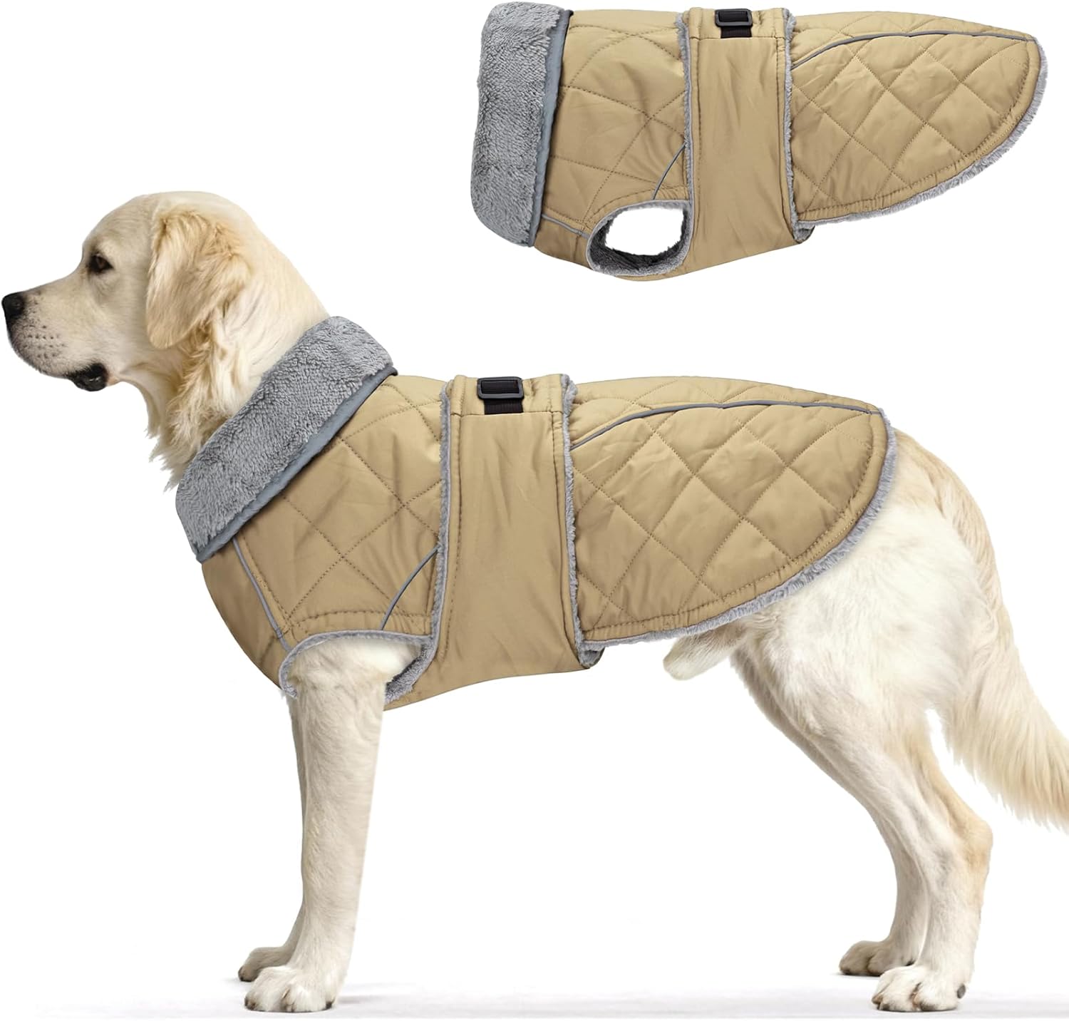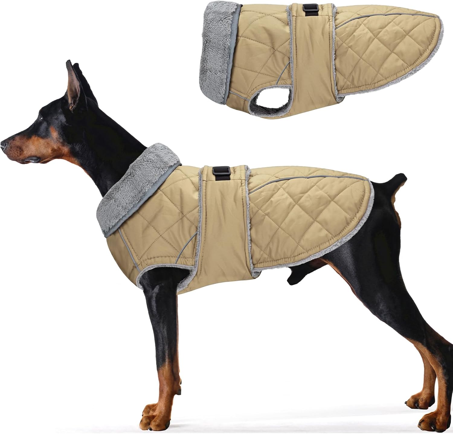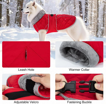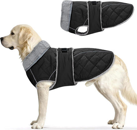 • 【Plush High-Necked Dog Coat】The collar of dog cold winter coat has thick, soft faux fur that's fluffy and warm, protecting your dog's neck in cold weather.