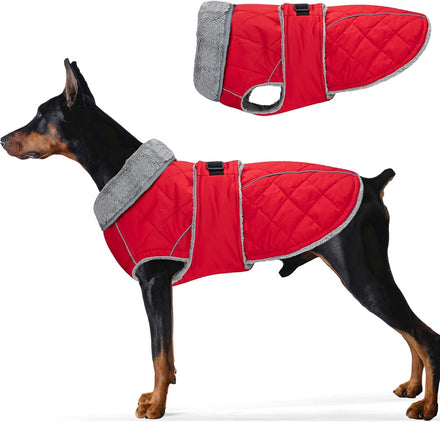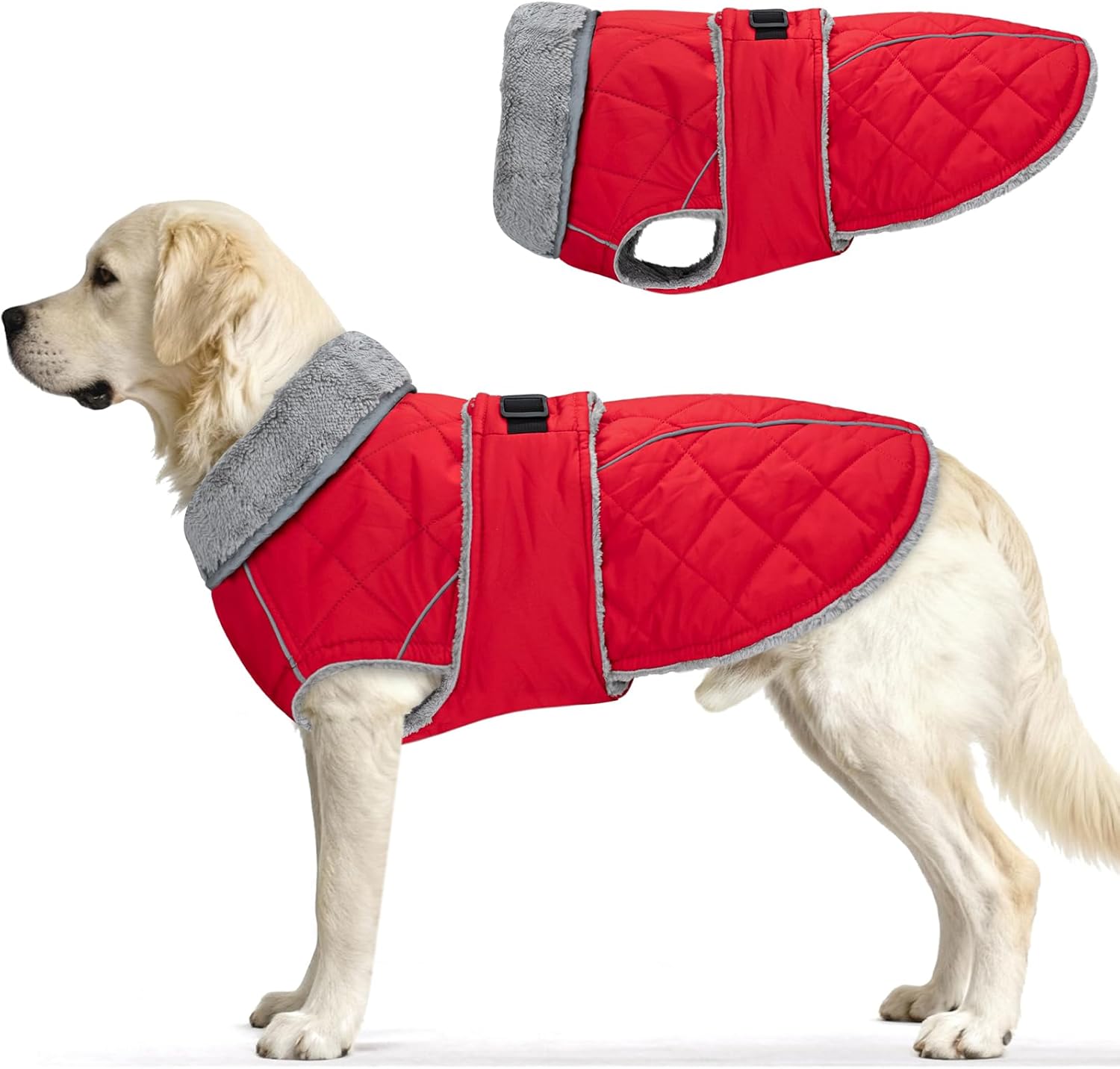 Dog Coat, Warm Dog Winter Coat for Medium Dogs, Waterproof Jacket with Adjustable Buckle & Velcro, Reflective Turtleneck Cold Weather Coats, Pet Fleece Vest Snow Jacket (Red, XL)