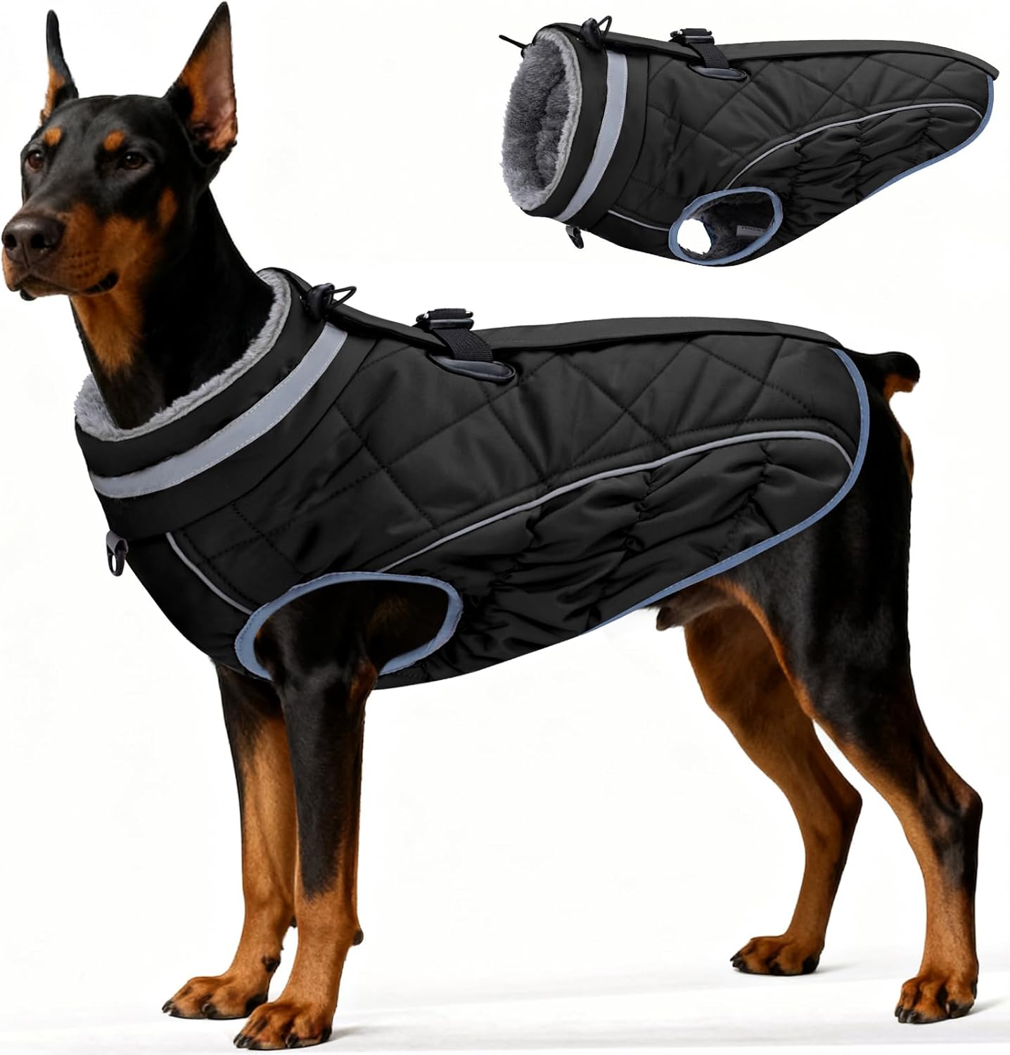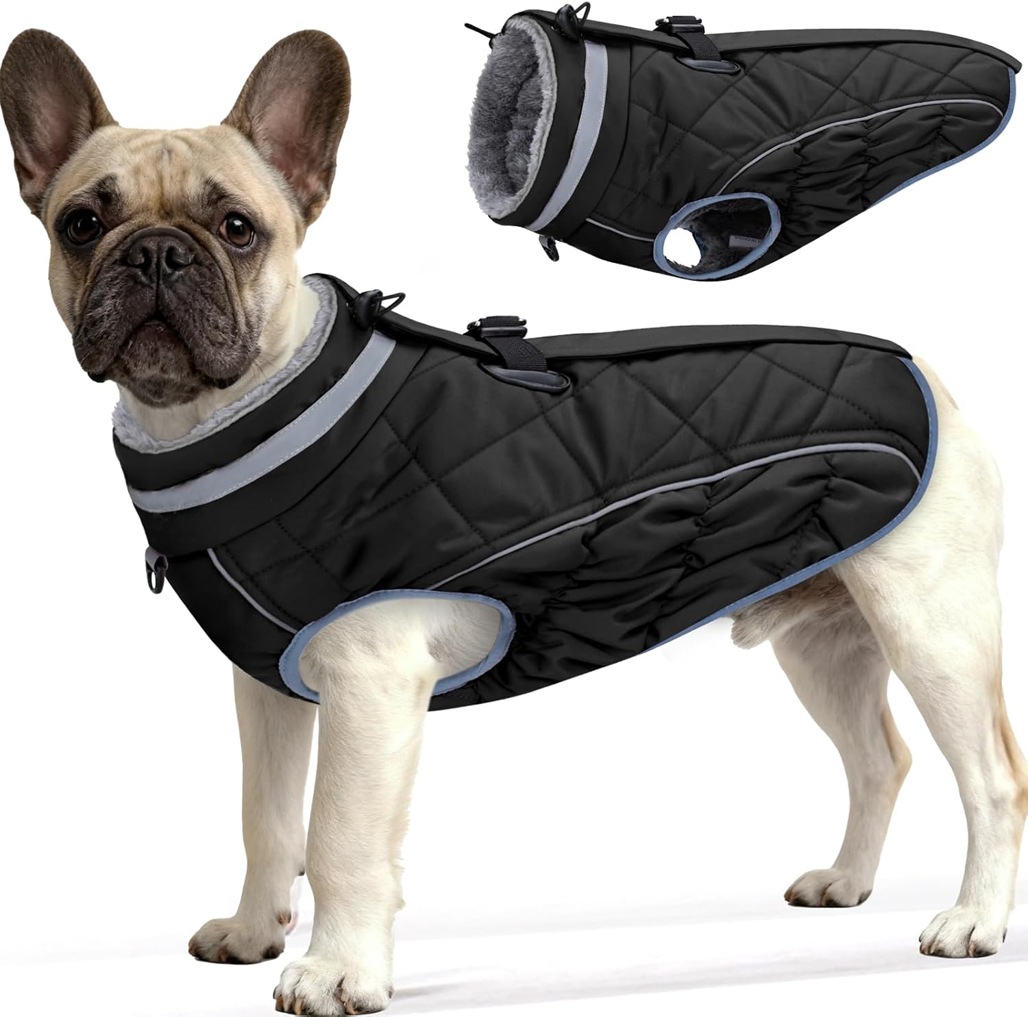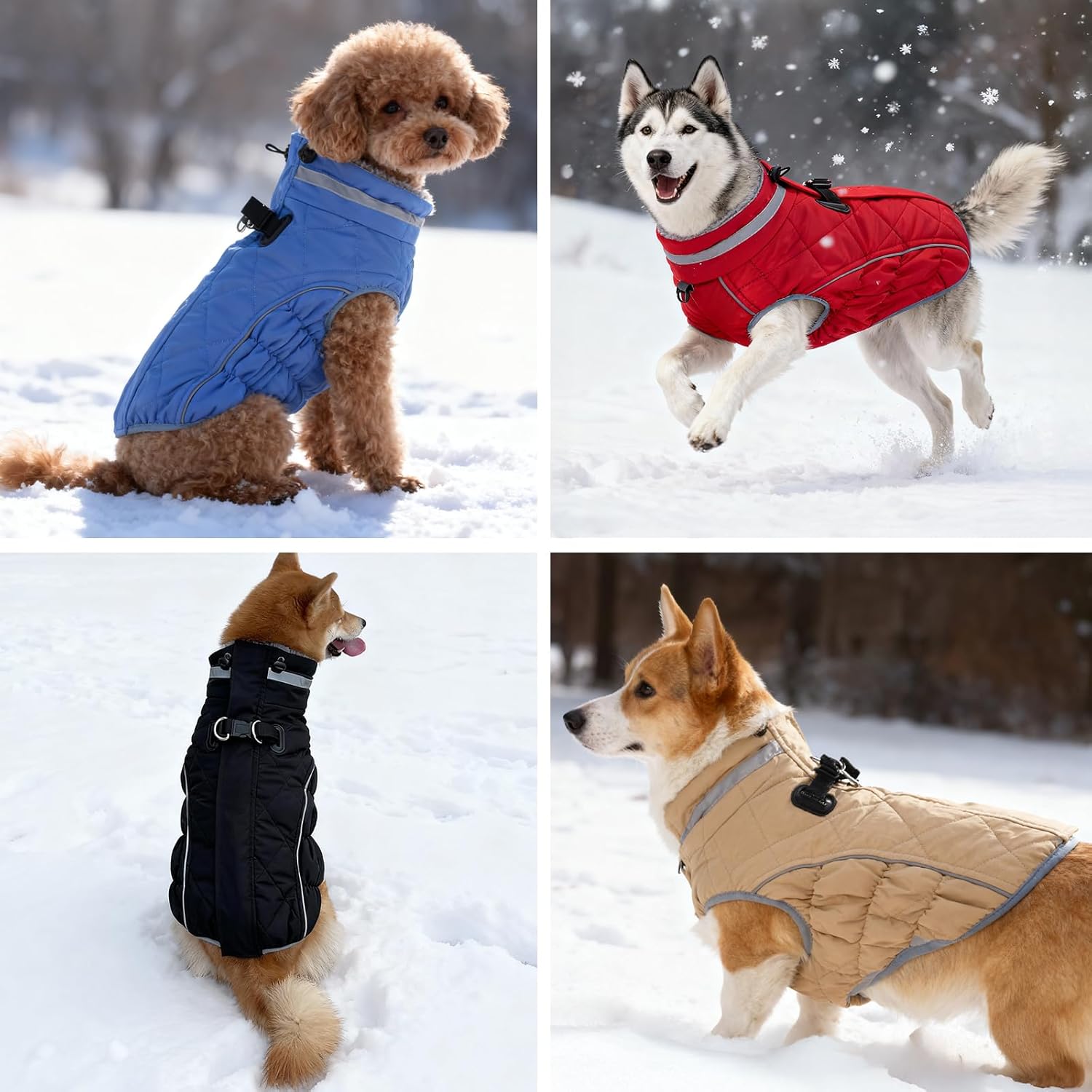 • 【Premium Fabrics】This insulated dog winter jacket features a thick plush lining that's soft and gentle against your pet's skin, ensuring maximum comfort. The exterior is crafted from waterproof polyester fabric, keeps your dogs dry and warm even in drizzly or snowy weather.