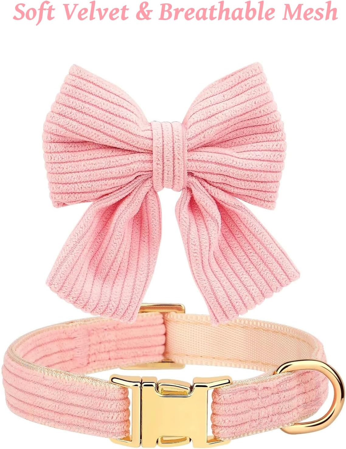 - 🌷【Soft Velvet & Breathable Mesh】This small, soft dog collar features breathable air mesh that keeps your pup comfy and dry during daily use, no irritation, no rubbing against their skin. The gold metal hardware and bowtie add a touch of flair, making your pet stand out in style—perfect for parties, photoshoots, or any special occasion