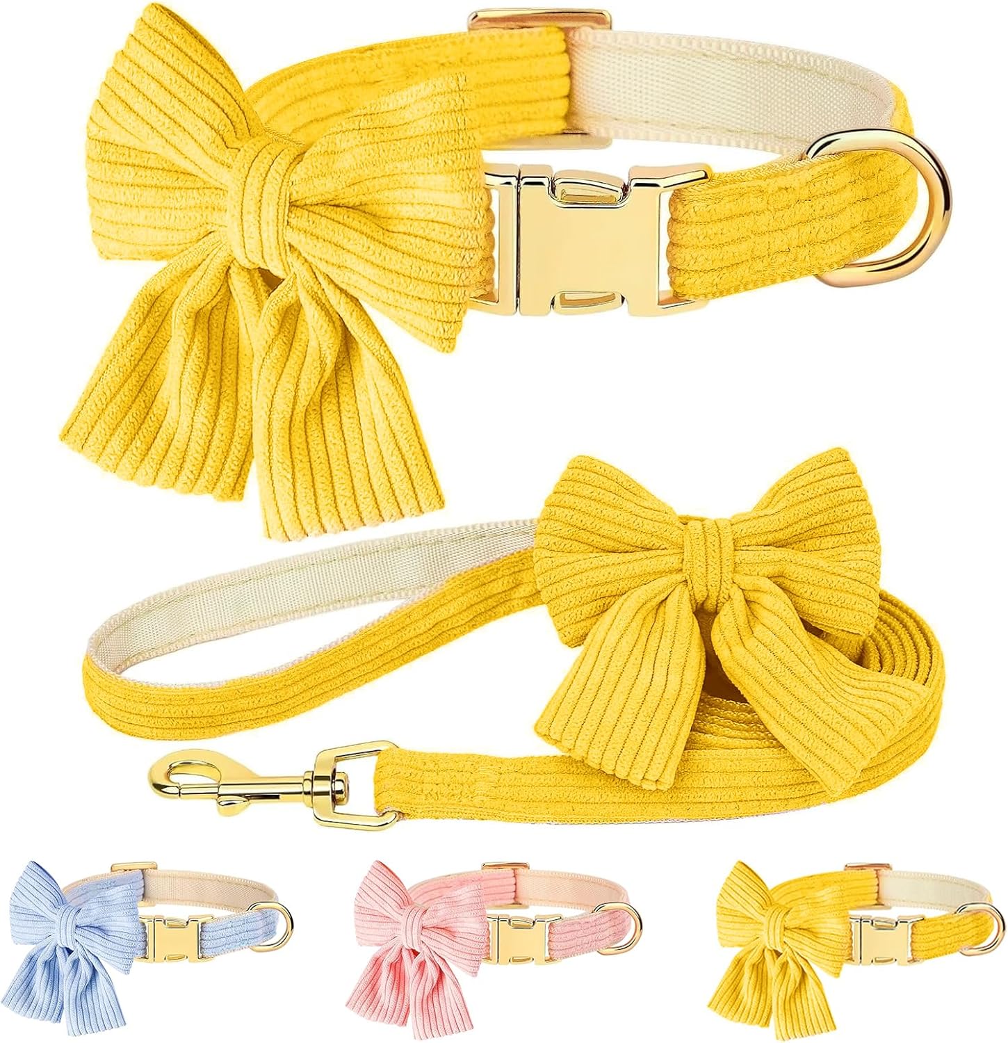 - 🌻【Dog Collar and Leash Set】This package has everything you need for stylish, practical walks with your furry friend.You’ll get an adjustable collar for 10"-16" Neck with a bowtie, plus a 5 FT rope leash with a matching bowtie—all in one great value set