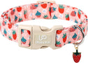 - Charming Strawberry Pendant: This cute berry collar is adorned with a beautiful strawberry-shaped pendant, offering an extra touch of charm and a playful vibe that’s perfect for your pup’s summer adventures.