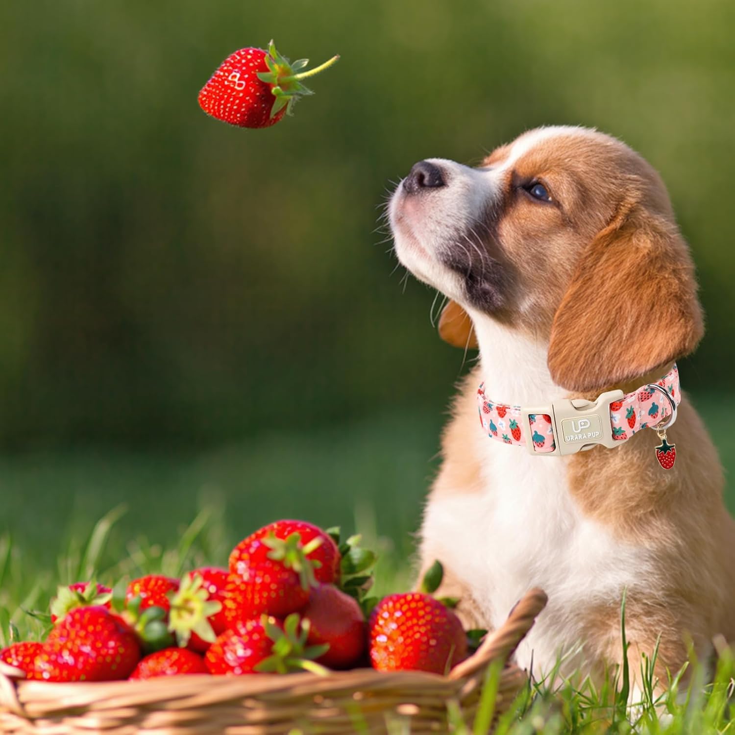 - Adorable Strawberry & Pink Summer Design: The UP URARA PUP dog collar features a cute strawberry pattern with a soft pink background and a touch of starlight, making it a perfect choice for adding a sweet and playful summer look to your dog's wardrobe.
