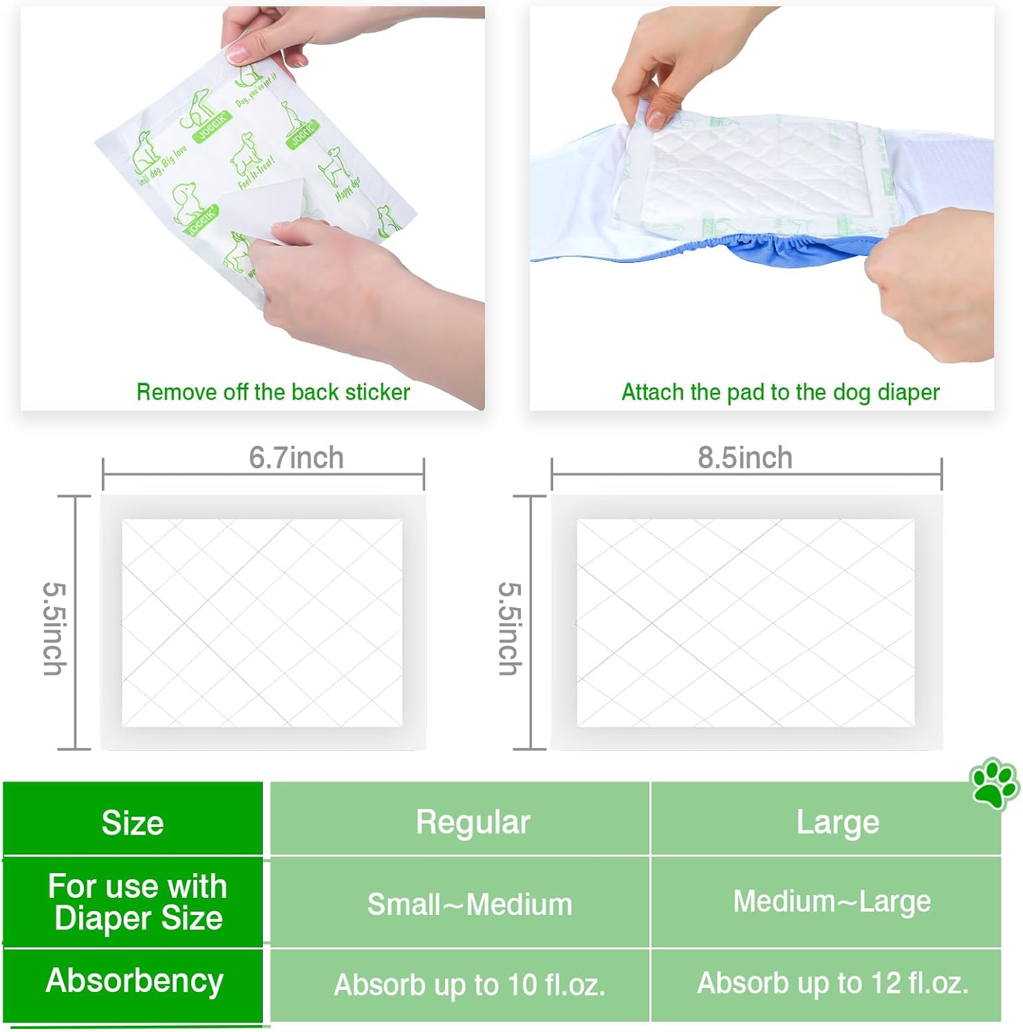 - Superior Absorbency: The dog diaper pads absorb up to10 FL.oz keeping your pet dry day and night, and reducing skin irritation, the multi-layer core disperses fluid effortlessly and locks it away for powerful leak protection